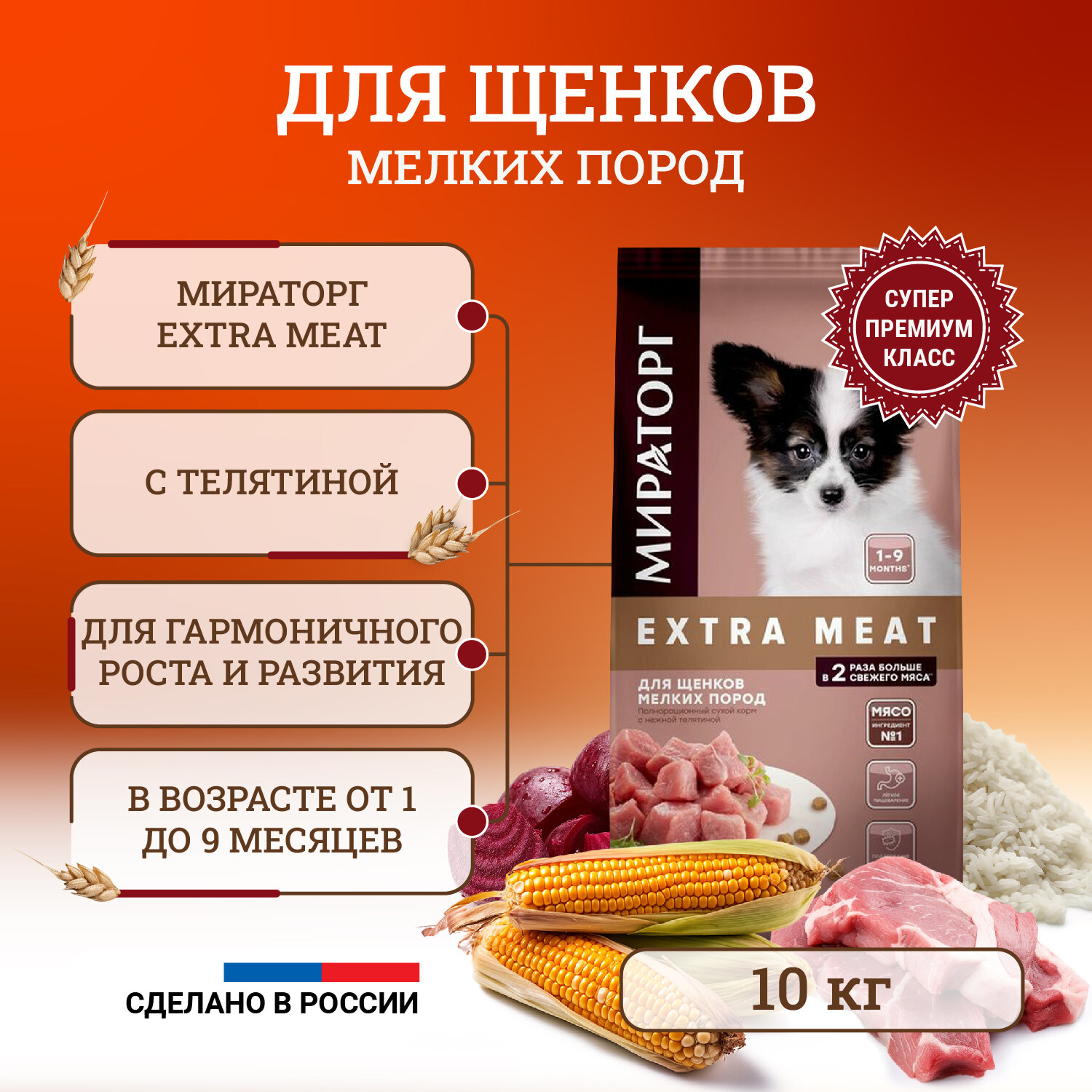Корм сухой для щенков мелких пород в возрасте от 1 до 9 мес. c нежной телятиной Extra Meat Мираторг 10кг СК Короча (2505314)