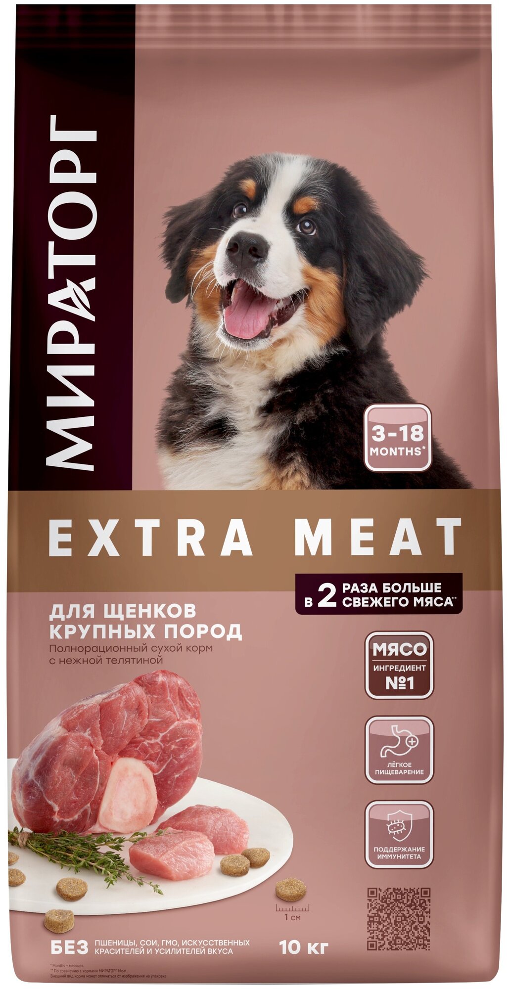 Корм сухой для щенков крупных пород в возрасте от 3 до 18 мес. c нежной телятиной Extra Meat Мираторг 10кг СК Короча (2505314)
