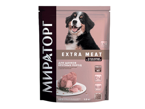 Корм сухой для щенков крупных пород в возрасте от 3 до 18 мес. c нежной телятиной Extra Meat Мираторг 15кг СК Короча (2505314)