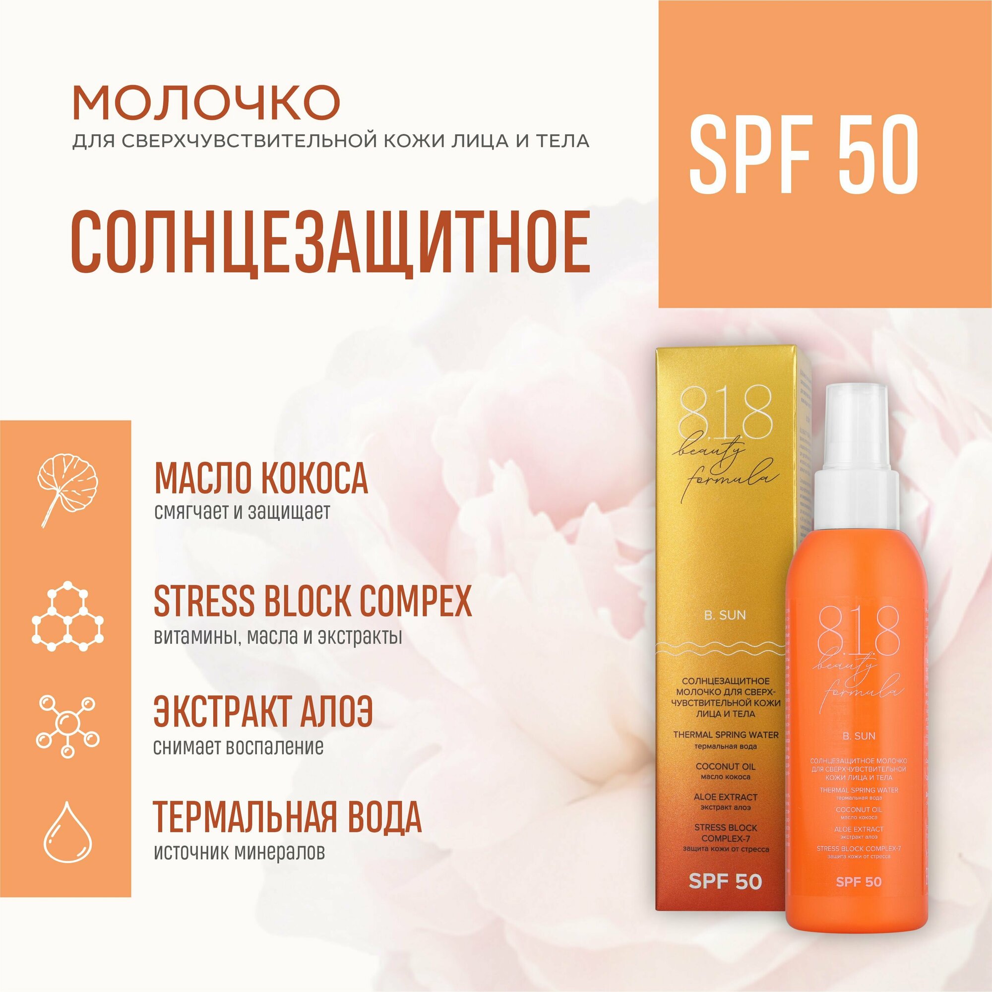 Молочко солнцезащитное для сверхчувствительной кожи лица и тела SPF50 8.1.8 Beauty formula фл. 150мл ООО ПроКосметика (2445736)