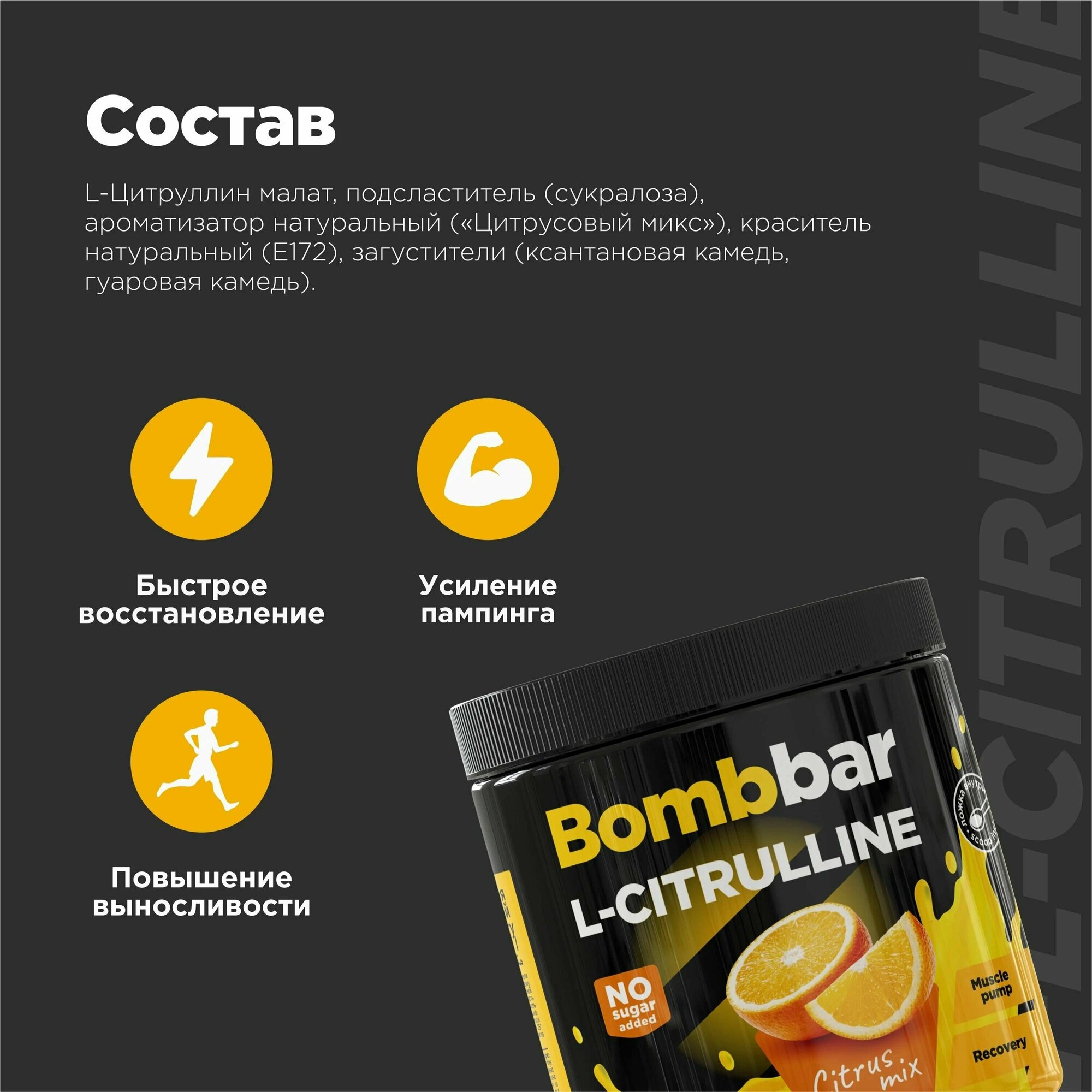 Коктейль L-цитруллин цитрусовый микс Bombbar 165г ООО Фитнес Фуд (2664470)