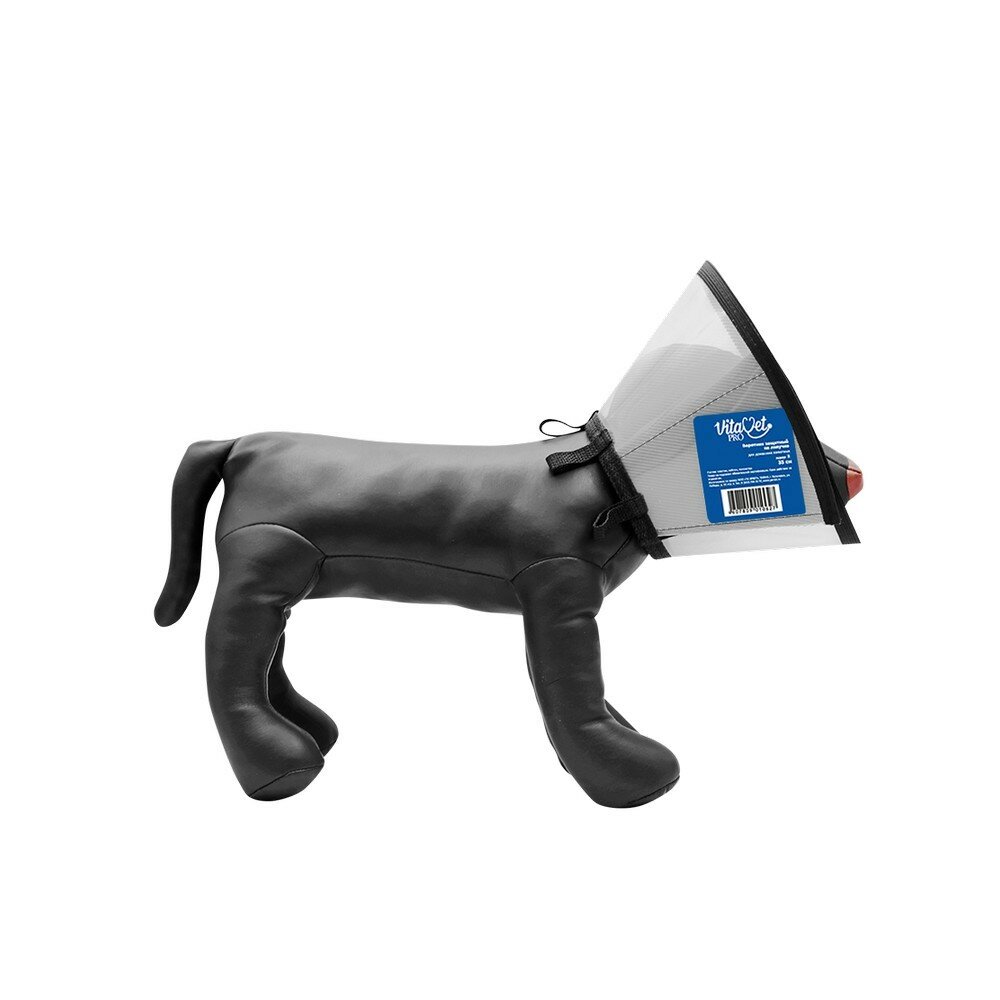 Ветеринарный защитный воротник для животных VitaVet Pro – станет для Вас незаменимым помощником по уходу за вашим питомцем в послеоперационный период.Ключевые особенности:Защищает от разлизывания и расчесывания ран.Помогает в реабилитации животных.Надежная фиксация на липучке.Крепкий пластик.Защитный воротник на липучке для кошек и собак VitaVet PRO предназначен для предотвращения расчесывания тела, головы и шеи при послеоперационных швах, кожных заболеваниях и других повреждениях, а также слизывания лекарственных препаратов и мазей. Воротник прозрачный, что позволяет животному ориентироваться при ходьбе.Разработано вместе с ветеринарными врачами.Ветеринары рекомендуют использовать защитную конструкцию на шее:В послеоперационный период.При травмах конечностей — конус, закрепленный на шее, не даст животному грызть гипс, снимать шины и повязки, слизывать мазь.Заболевания ушей и глаз — воронка ограничит доступ к ним и защитит от ветра и пыли на прогулках, уменьшит риск инфицирования незараженного органа, если воспалительный процесс в одном глазу.Лишаи, экземы и другие кожные заболевания, вызывающие сильный зуд — воротник не позволит их расчесывать, распространяя инфекцию, слизывать мазь.Профилактическая обработка против блох и клещей — некоторые используемые препараты токсичны, и облизав их можно отравиться и снизить эффективность инсектицидных веществ.Порядок применения:Наденьте воротник на шею питомца и закрепите на липучку.Проверьте плотность прилегания пальцем. Он должен свободно помещаться между шеей и аксессуаром.Размер: № 8.Обхват шеи: 52 – 60 см.Высота воротника: 35 см.