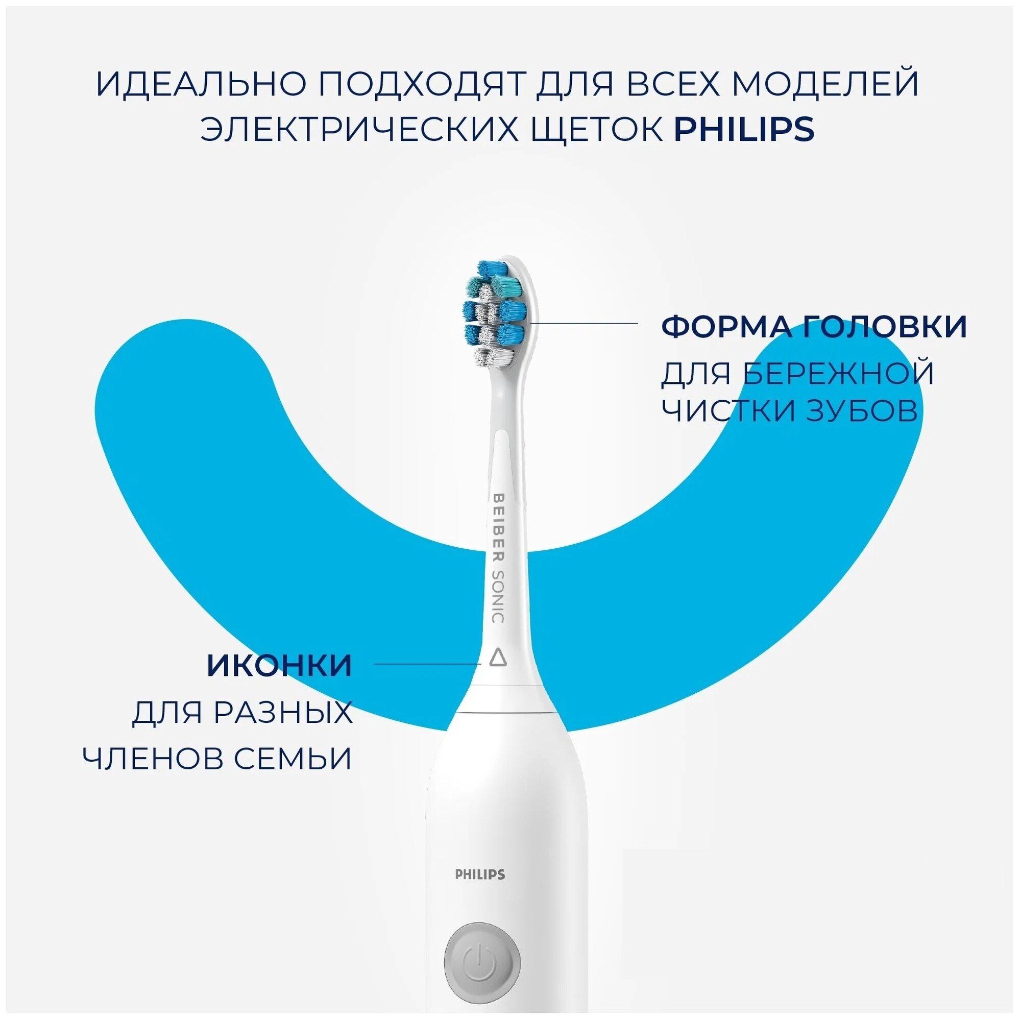 Насадки для зубной щетки philips sonicare для гигиены и ухода за полостью рта. Насадка на электрическую щетку средней жесткости безопасная для эмали и ежедневного базового ухода для зубов от зубного налета. На насадках имеются голубые щетинки, которые обесцвечиваются наполовину, сигнализируя о необходимости замены насадки. Насадки для зубной щетки philips идут в комплекте с защитными колпачками. Колпачки это не только гигиенично и удобно, но они также помогут защитить насадку от пыли и бактерий. Насадка на электрическую щетку от бренда "BEIBER" это доступное соотношение цены и качества, что бы наши клиенты придерживались рекомендаций стоматологов о периодичности замены зубных щеток. Стоматологи рекомендуют менять зубные щетки каждые 3 месяца, даже при отсутствии видимых следов износа, так как на щетинках скапливаются и размножаются болезнетворные бактерии, которые являются основным источником возникновения кариеса. Удобный контейнер для хранения позволит взять с собой в дорогу насадки в дорожном наборе. В нашем магазине товаров для здоровья и красоты зубов вы также сможете приобрести зубные ершики для брекетов, зубочистки, детские насадки для электрической зубной щетки oral b мягкой жесткости для малышей и детей от 3 лет, насадки взрослые для щеток серии classic, care, white, cross, а также скребок для чистки языка, зубные нити и другие наборы для ухода за зубами в контейнере.