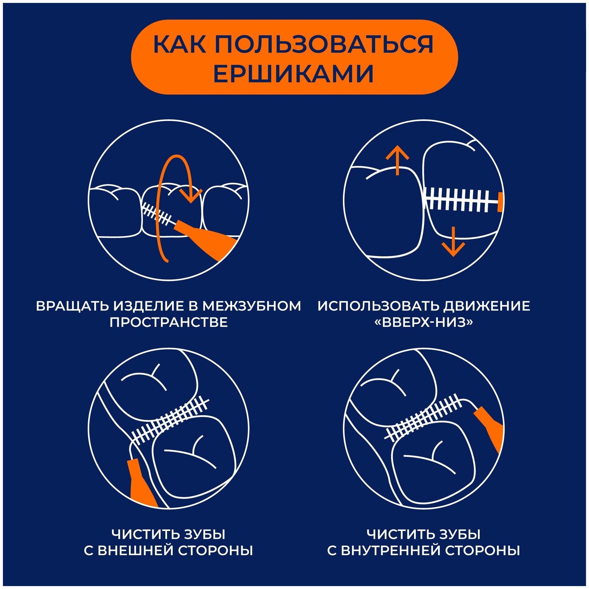 Межзубные ершики BEIBER превосходно удаляют зубной налет и остатки пищи между зубами и брекетами. Гибкий и упругий стержень позволяет производить качественную чистку передних и задних зубов, а так же брекет систем. Удобная зубочистка помогает удалить остатки пищи в труднодоступных местах. Регулярное использование ершиков для зубов предотвращает образование налета, зубного камня и препятствуют воспалению и заболеванию десен. Ершики для брекетов BEIBER не являются одноразовым продуктом. После использования промойте ершик в теплой проточной воде и используйте вновь. Менять по мере изнашивания щетины. ВАЖНО! При чистке металлический стержень не должен касаться зубной эмали. Если это происходит, то вам необходимо выбрать ершик меньшего размера. Основные особенности: для межзубных промежутков 0,8 мм. Легко скользит между зубами. Щетина средней жесткости Ручка с насечками не скользит и приятно держать в руках.Упругий стержень позволяет качественно и бережно очистить межзубное пространство.br>