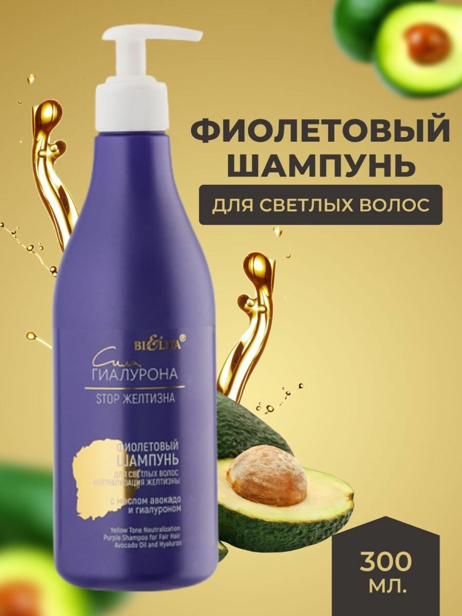 Шампунь для светлых волос с маслом авокадо и гиалуроном фиолетовый Stop Желтизна Белита 500мл Белита СП ООО (578415)