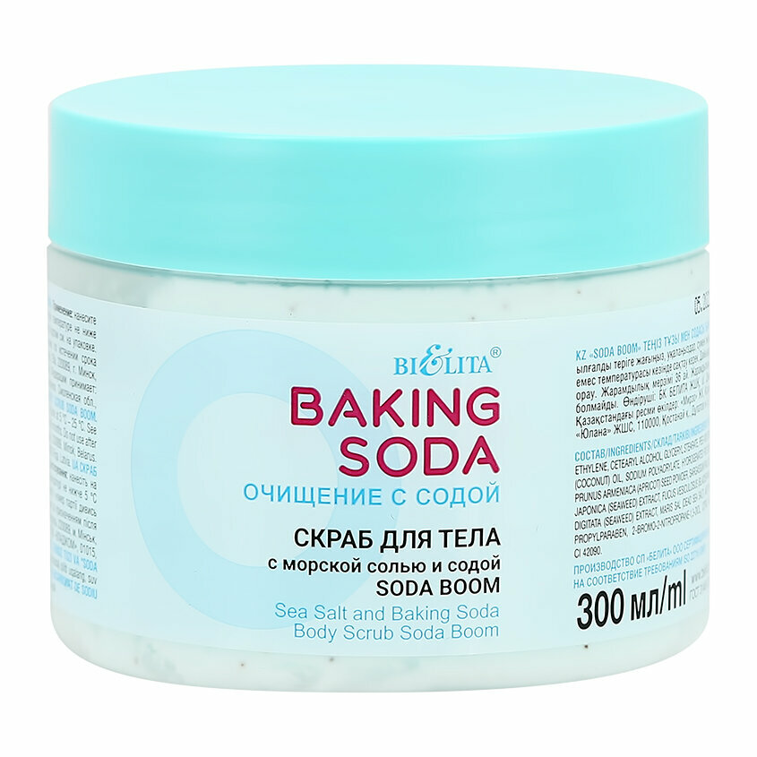 Косметическая линия "BAKING SODA. Очищение с содой" наполнена активным компонентом — пищевой содой, которая хорошо очищает кожу и растворяет все виды загрязнений. Она глубоко проникает в поры, выталкивая на поверхность все вредные вещества и улучшая доступ кислорода к клеткам. Средства линии помогут удалить загрязнения и макияж, глубоко очищают поры и оказывают легкое отшелушивающее действие. Результат после применения — чистая кожа без покраснений и раздражений! Косметическая линия "BAKING SODA. Очищение с содой" отлично подойдет для комбинированной и склонной к жирности кожи, которая часто страдает от различных высыпаний!Скраб для тела деликатно отшелушивает ороговевшие клетки эпидермиса, подготавливая кожу к дальнейшему уходу. Частички соды и соли, входящие в состав скраба, насыщают кожу минералами, способствуют улучшению микроциркуляции. При регулярном использовании средство выравнивает рельеф кожи и повышает ее эластичность, помогает бороться с целлюлитом.Сода деликатно очищает кожу от загрязнений и ороговевших клеток, придавая ей гладкость и бархатистость.Кокосовое масло прекрасно питает и смягчает кожу, устраняет сухость и шелушение.Морская соль активизирует подкожный метаболизм, разглаживает кожу, усиливает циркуляцию крови, насыщает кожу необходимыми микроэлементами.Комплекс водорослей (саргассум, ламинария японская, фукус пузырчатый) интенсивно увлажняет и тонизирует кожу, повышает ее эластичность и упругость, выводит шлаки и токсины.