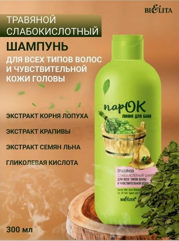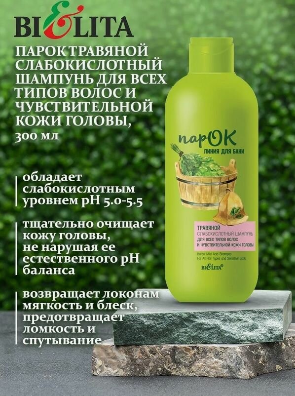 Шампунь для всех типов волос и чувствительной кожи головы травяной слабокислотный ПарОК Линия для бани Белита 300мл Белита СП ООО (578415)