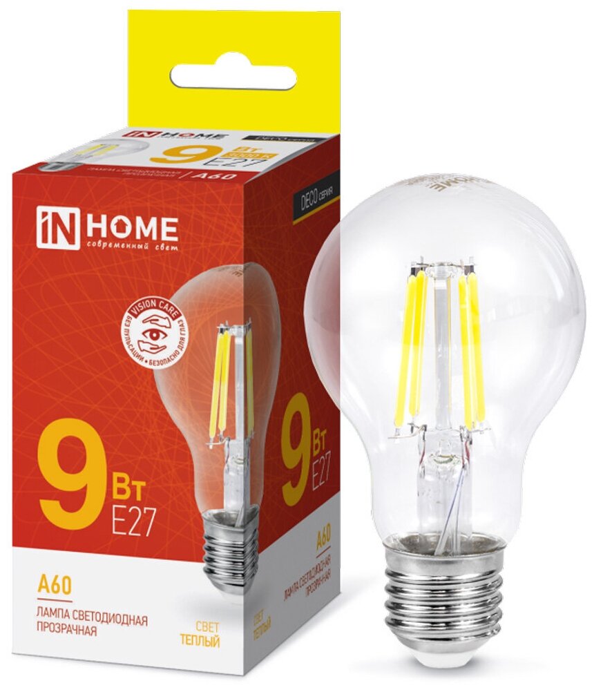 Модель: In home led-a60-deco 9Вт 230В Е27 3000К