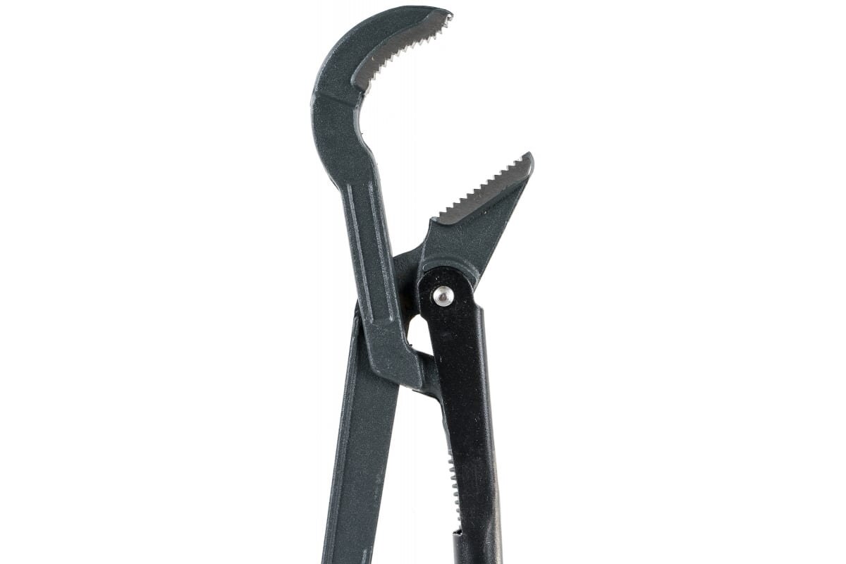 Особенности:Матовое защитное покрытие предотвращает появление сколов на корпусе инструмента;Изготовлен из легированной хромованадиевой стали по стандарту DIN5234 (Form A, C) Б, что соответствует ТУ ГОСТ 18981-73;Индукционно-закаленные до высокой твердости зубчатые рабочие поверхности с углом наклона зубьев, который позволяет достичь максимально возможное усилие захвата; S-образный тип расположения губок позволяет обслужить трубы и крепежные элементы различного профиля.