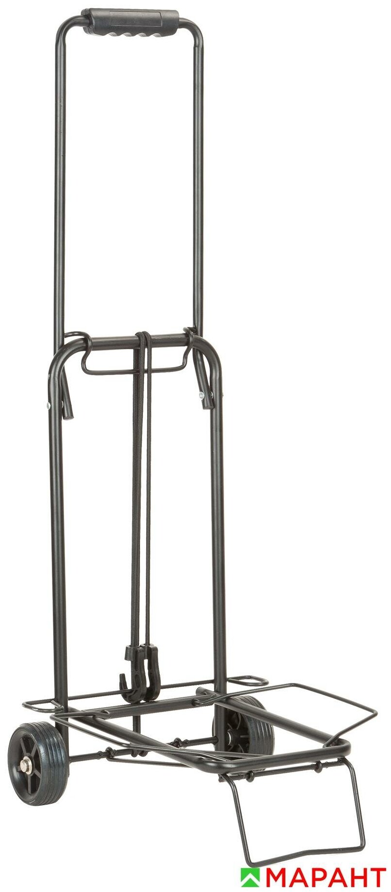 Тележка стальная, раскладная. Грузоподъемность - 30 кг., два колеса диаметром 9 см. Материал: сталь, пластик.