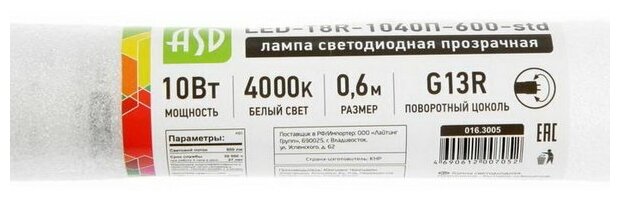 Модель: Led-t8r-std 10Вт 230В g13 4000К