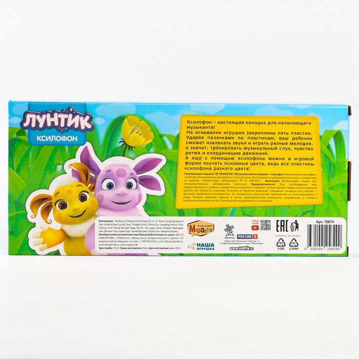 Музыкальный инструмент Mapacha Ксилофон Лунтик 2 палочки, 5 нот