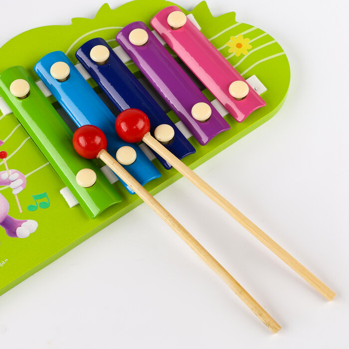 Ксилофон – настоящая находка для начинающего музыканта! На основании игрушки закреплены пять пластин. Ударяя палочками по пластинам, ваш ребенок сможет извлекать звуки и играть разные мелодии, а значит, тренировать музыкальный слух, чувство ритма и координацию движений. А еще с помощью ксилофона можно в игровой форме изучать основные цвета, ведь все пластины ксилофона разного цвета!