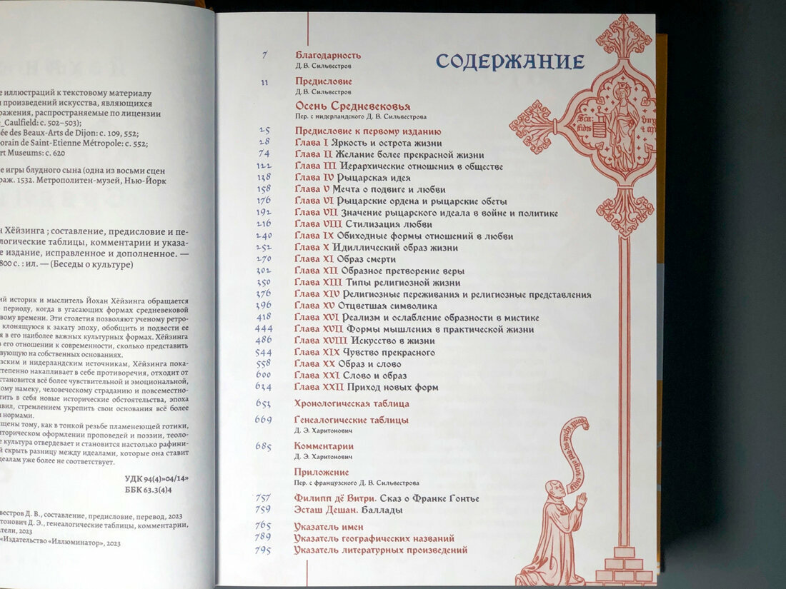 Чтобы создать обширную и фактурную картину этого периода, Йохан Xeйзингa опирается на широкий круг источников, который включает не только литературу, но и искусство. Издание богато иллюстрировано репродукциями произведений средневековой живописи, скульптуры, гравюры и книжной графики, что позволяет более полно представить зримый образ эпохи.