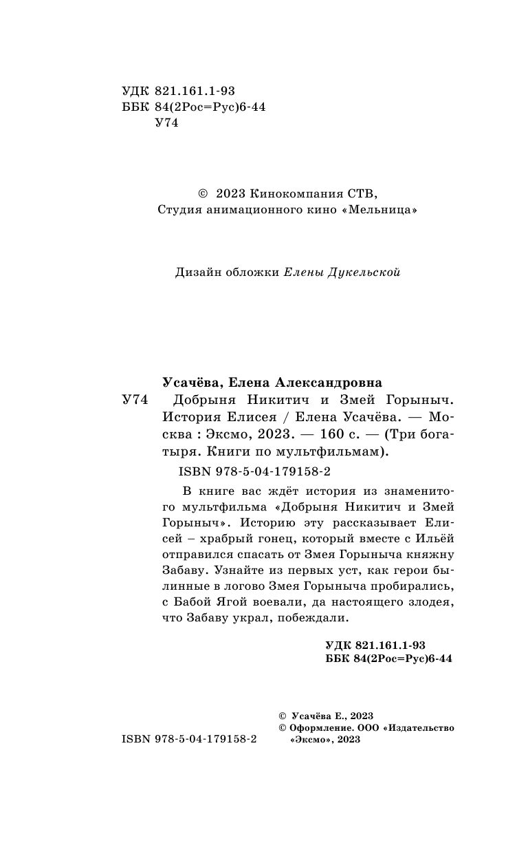 Сервис сравнения цен СкидкаГИД предлагает сравнить цены на товар «Книга: Добрыня Никитич и Змей Горыныч. История Елисея (Усачёва Елена Александровна); ООО "Издательство "Эксмо", 2023»