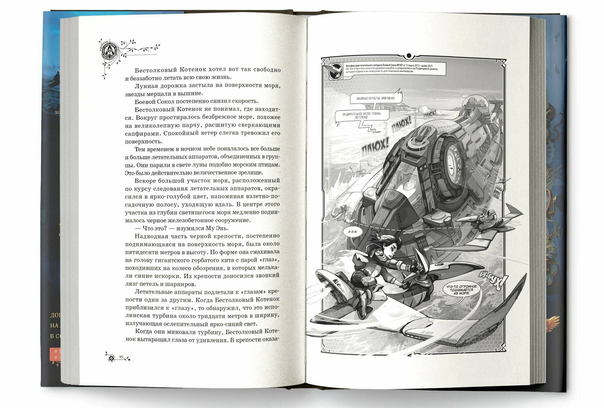 Кто бы мог подумать, что такое место и вправду существует! В воздухе летают Боевые Соколы, на улицах полно людей и роботов, а в неоновых лавках продаются редкие сокровища и различные механизмы. Чтобы отремонтировать своего друга, робота Бычка-4, Му Энь и Кругляш приходят на таинственный Подводный рынок. Сколько же странностей они там увидели! А между тем металлические роботы-жуки продолжают преследовать их. За героями из темноты уже наблюдает несколько пар алых глаз…