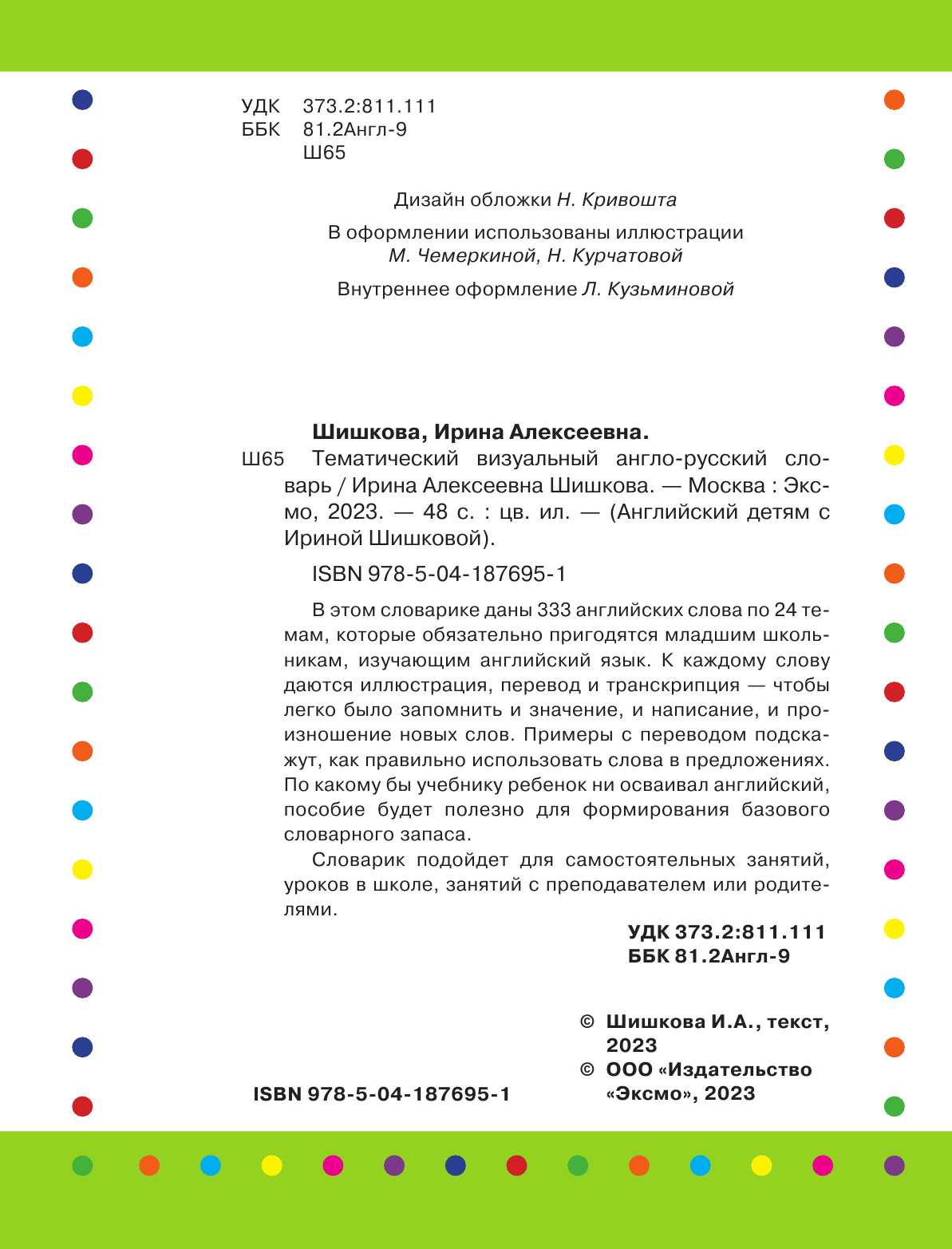 Тематический визуальный англо-русский словарь (Шишкова Ирина Алексеевна); ООО "Издательство "Эксмо", 2023