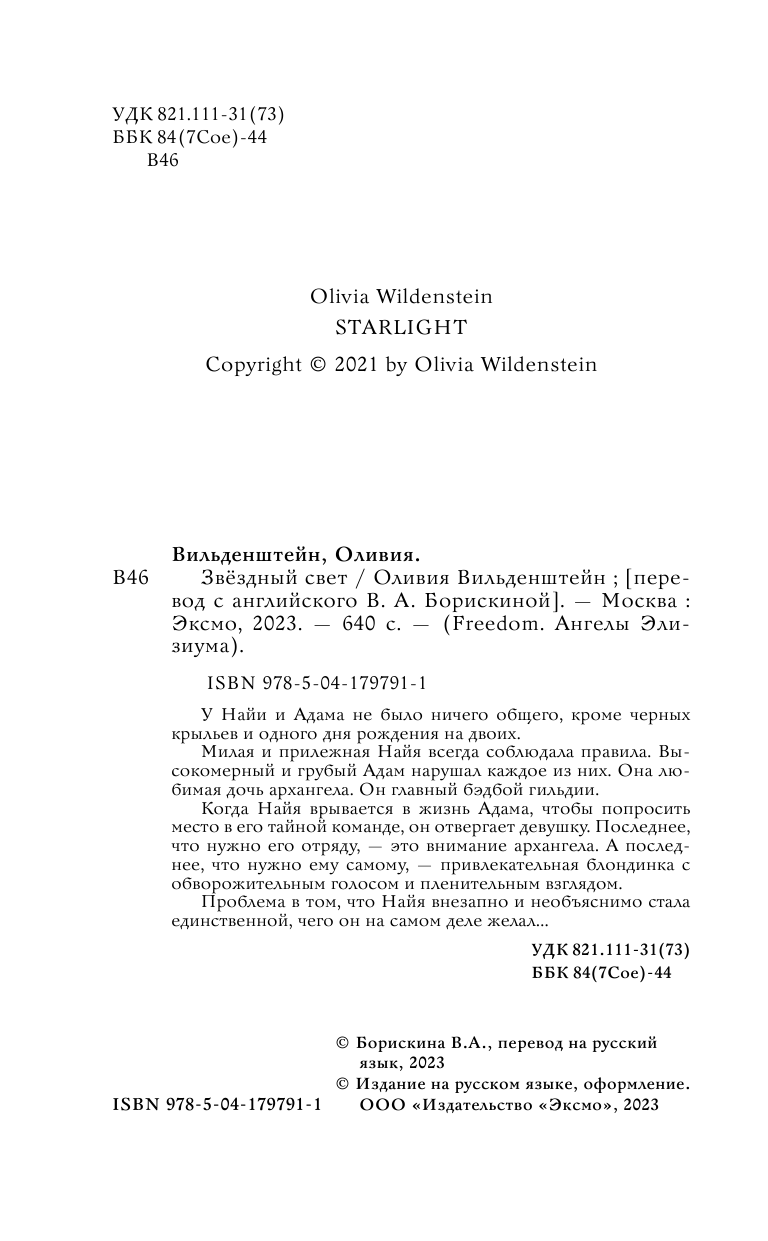 Книга: Звёздный свет (#3) (Оливия Вильденштейн); Эксмо, Freedom, 2023
