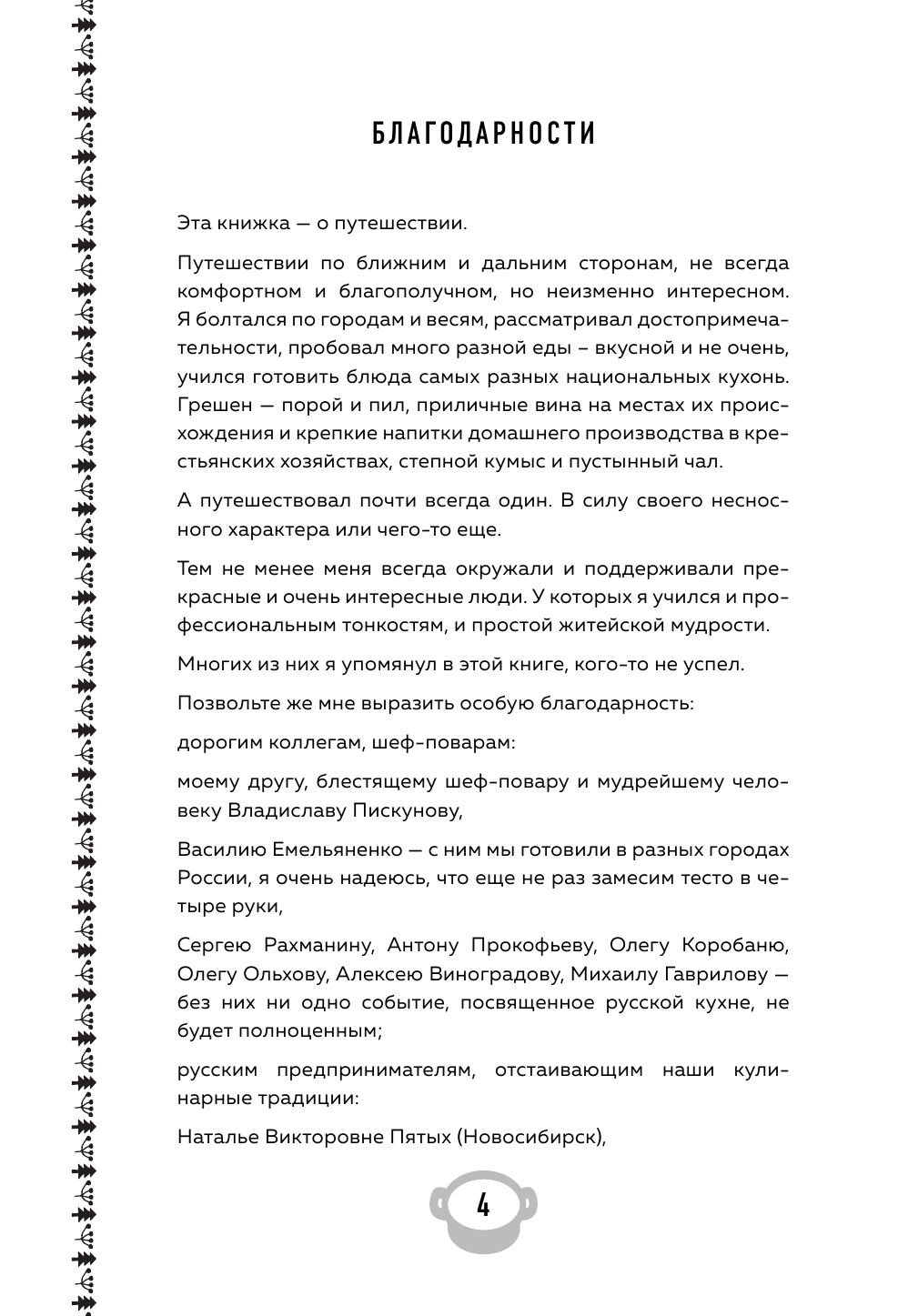 Кулинарные путешествия — это впечатления от местной еды, это бесконечные рассказы о том, где можно вкусно поесть, это всегдашнее сравнение одного блюда с другим, выспрашивание понравившихся рецептов и попытки приготовить такие же аутентичные блюда у себя дома. Все это вы найдете в новой книге Максима Сырникова, русского шеф-повара, многие годы отыскивающего и восстанавливающего настоящую русскую еду. Любопытство узнать секреты кухни Франции, Италии, Греции, Ближнего Востока, Китая, Латинской Америки привело его в эти страны и позволило сравнить эти кухни с нашей, российской. Вывод Максим сделал закономерный: наша российская — забайкальская, сибирская, дальневосточная, кухня Севера и Центральной России — ничуть не хуже! Мы можем гордиться разнообразием, оригинальностью, вкусом и ее давними богатыми традициями.