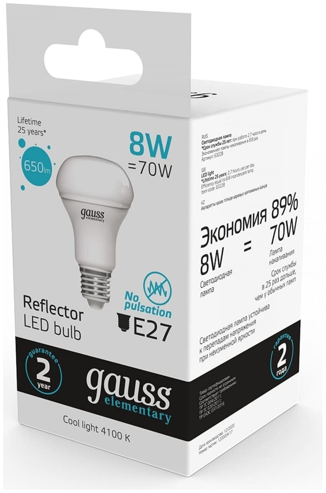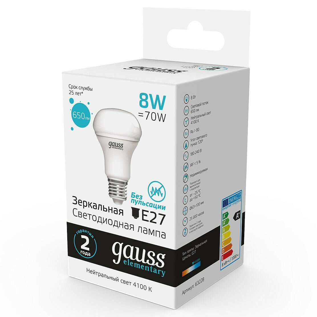 лампа Gauss Elementary 8Вт Е27 650Лм LED 4100К рефлектор (63228)