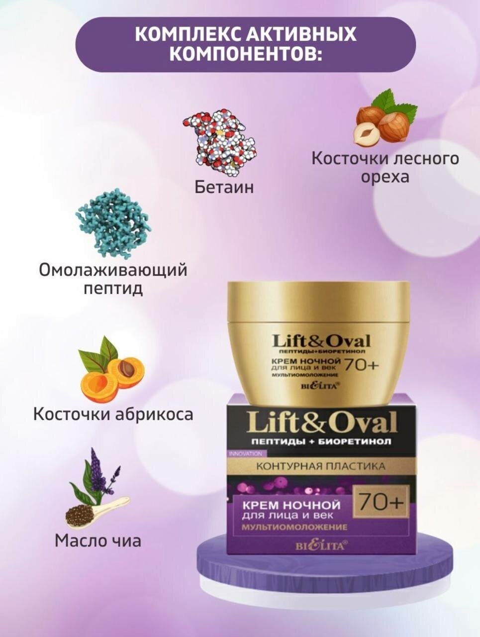 Крем для лица и век мультиомоложение ночной Lift&Oval70+ Белита 50мл Белита СП ООО (578415)