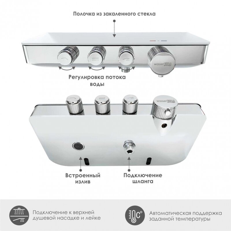 Смеситель для ванны WasserKRAFT Mindel 8599 Thermo с термостатом Хром Белый