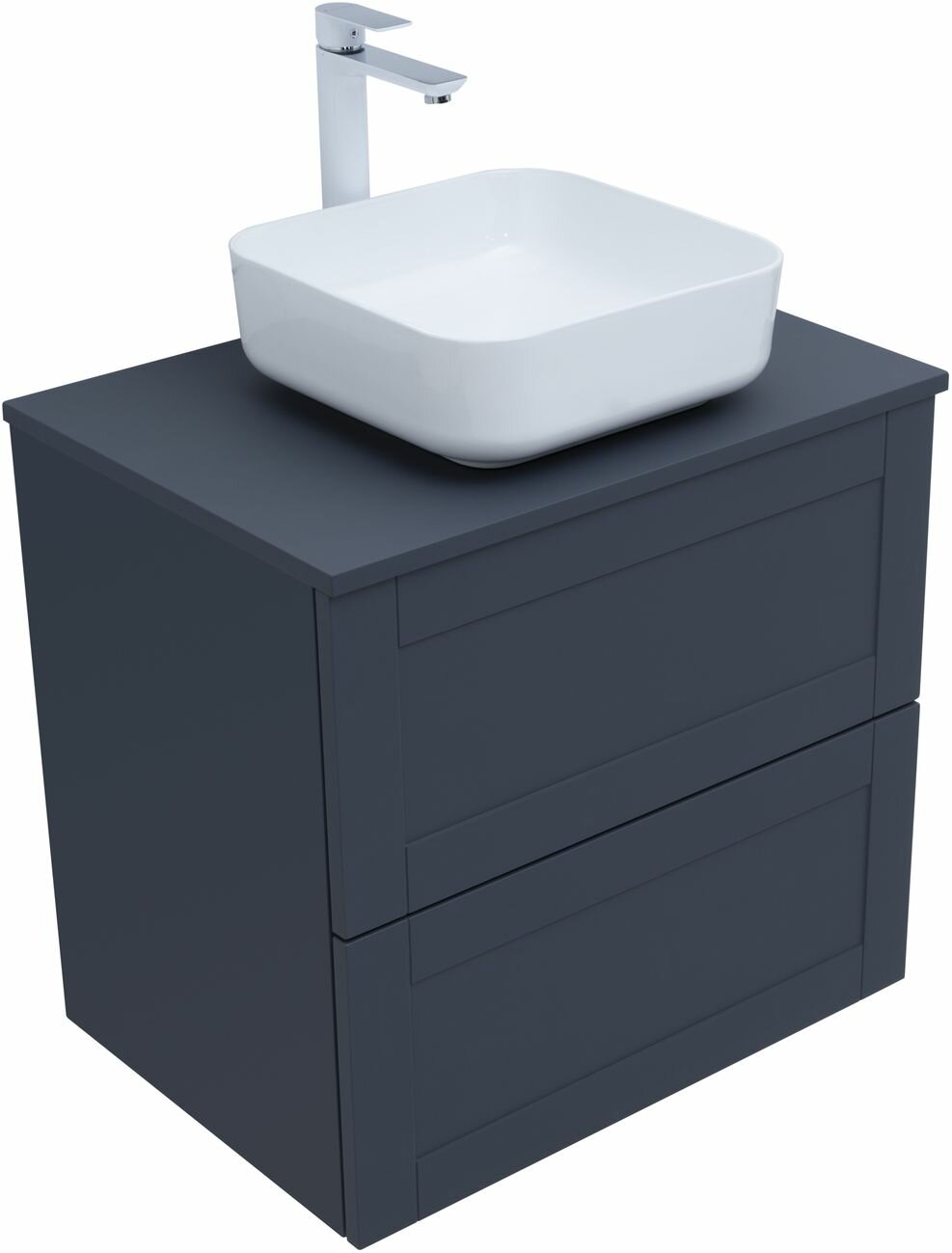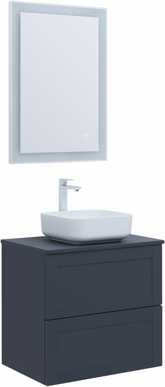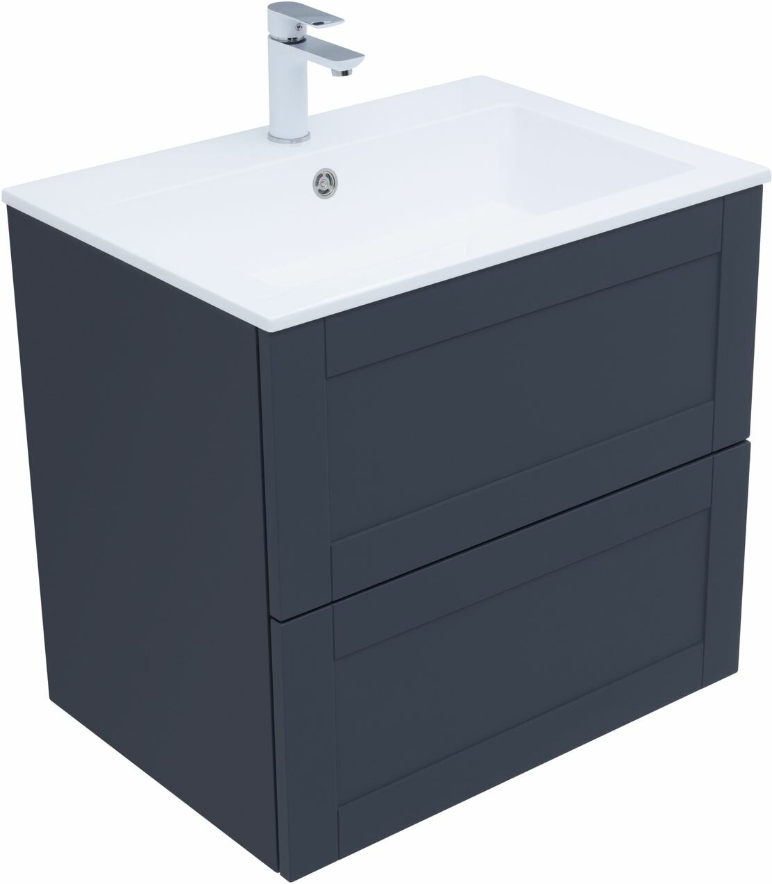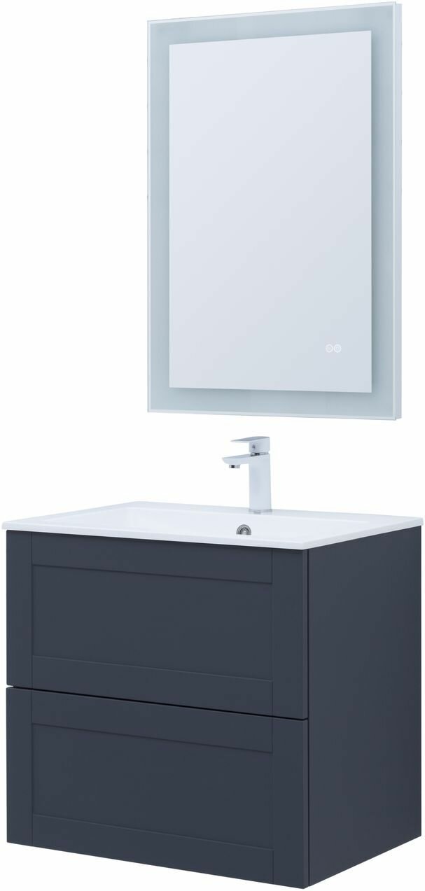 Тумба под раковину. Для изготовления фасадов и корпусов используется суперматовая пленка ПВХ повышенной прочности с эффектом Soft touch. Тумба имеет приятную, бархатистую на ощупь поверхность, устойчивую к царапинам и воздействию влаги. Выдвижные ящики открываются нажатием на фасад (направляющие с системой рush-to-open). Материал ящиков и внутренних деталей - ВЛДСП. Цвет-маренго(темно-синий)
