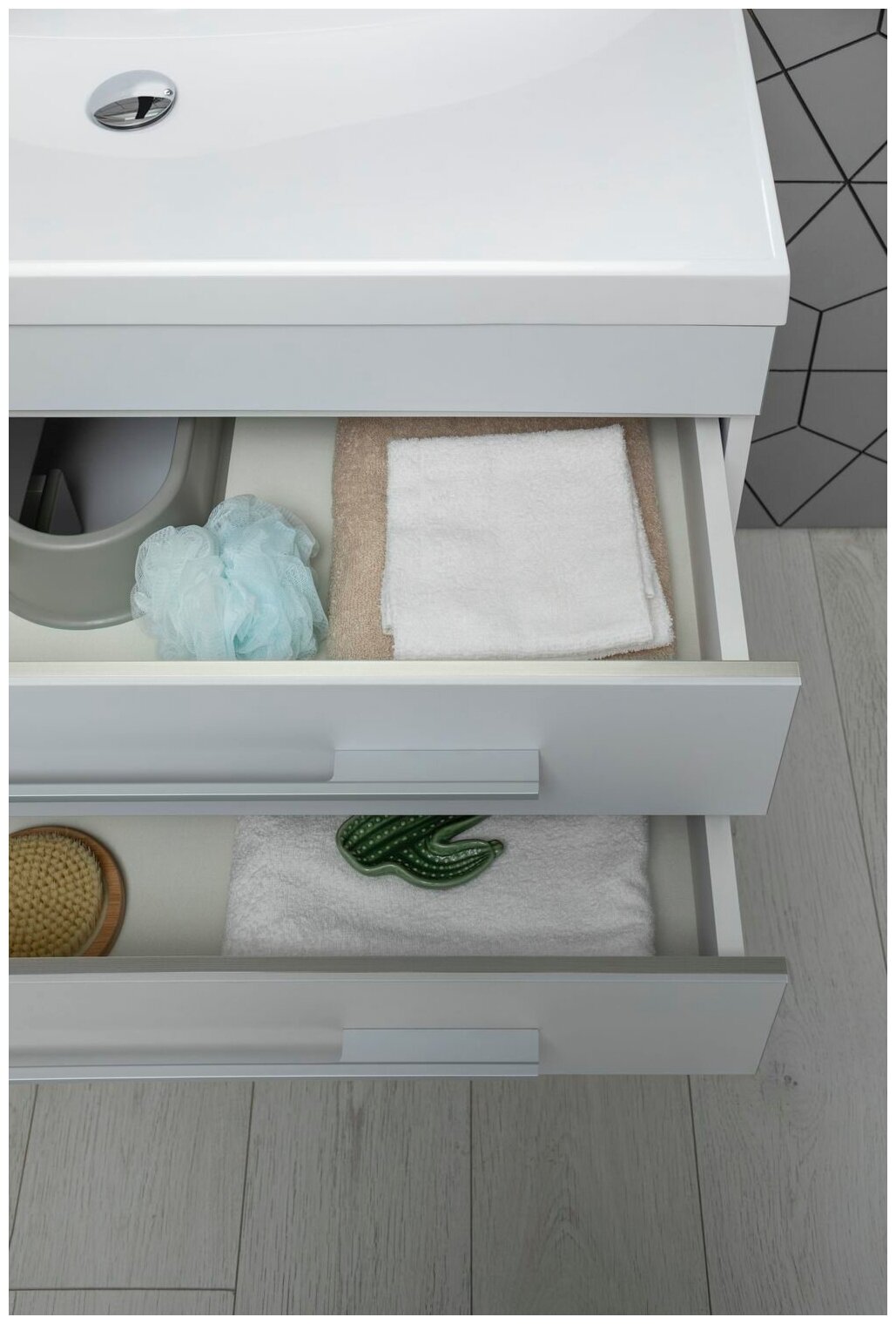 Тумба под раковину Aquanet Верона 90.2 00272424. Тумба под раковину в ванную комнату бренда Aquanet выполнена в стиле модерн и входит в нашу коллекцию мебели Верона. Представленная коллекция мебели для ванных комнат осчастливила сотни покупателей, так как они приобрели сочетание дизайна, качества и функциональности. Важный момент при выборе тумбы для умывальника / раковины - это материалы. Они должны быть адаптированы к эксплуатации в условиях повышенной влажности. МДФ - материал, из которого выполнен корпус изделия, фасад - из МДФ. При монтаже подвесной тумбы в первую очередь необходимо учесть ширину, которая равна 90,2 см. Тумба в цвете белый (белый матовый) освежит Вашу ванну и будет отлично сочетатся с сантехникой. Тумба в ванную также обеспечит вам экономию места, так как в ней предусмотрены вместительные ящики, оснащенные механизмом доводчика