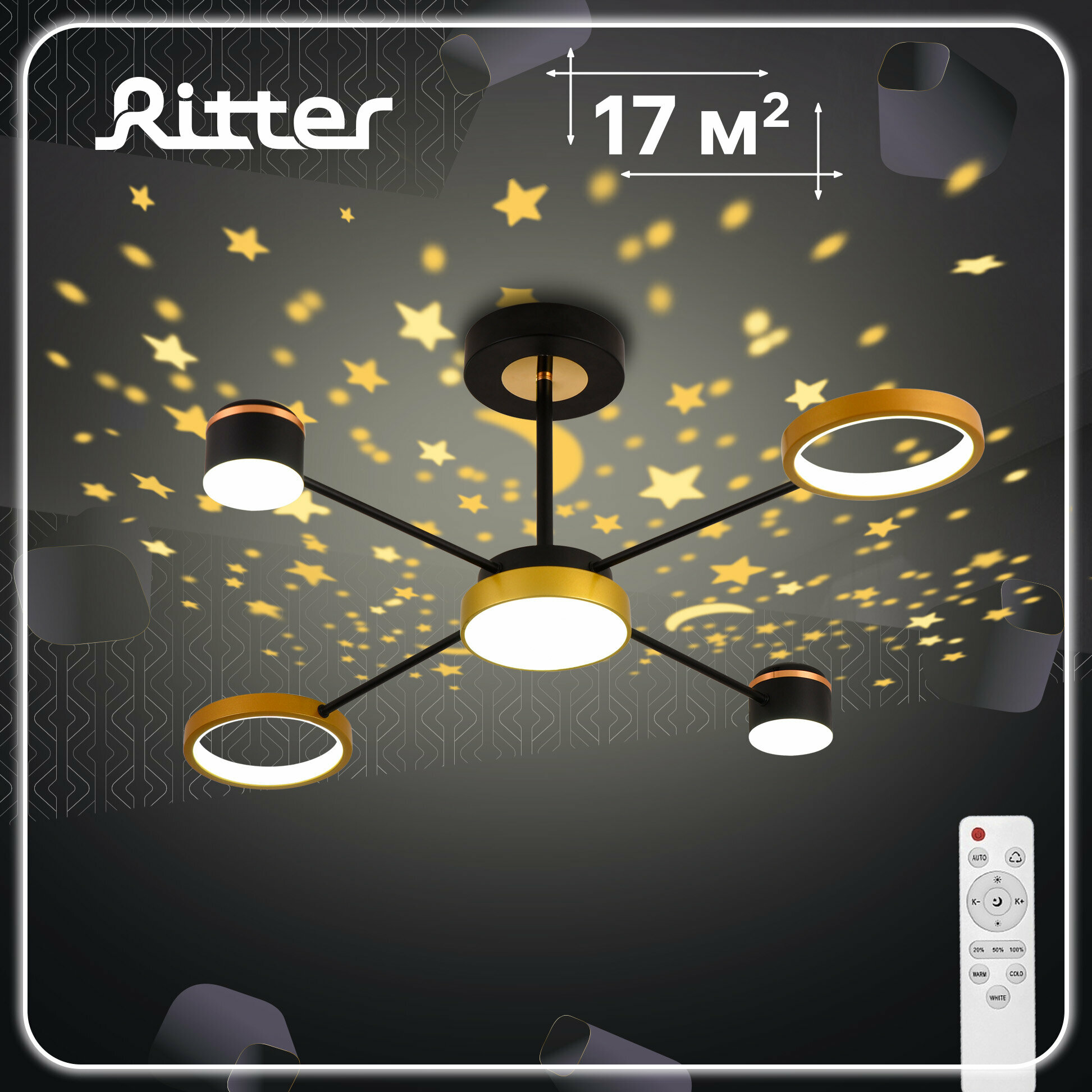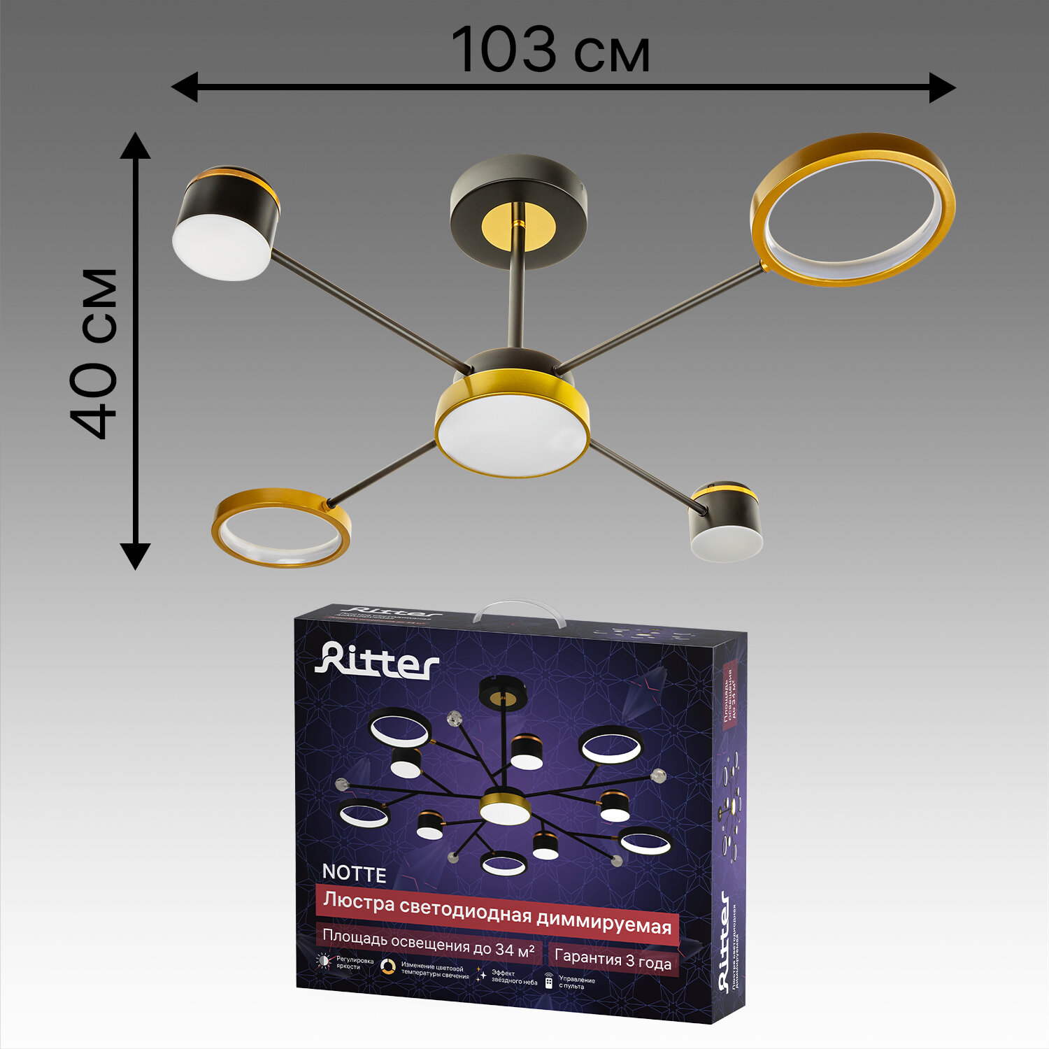 Люстра светодиодная «Note» 515955 с пультом управления 17 м² регулируемый белый свет цвет черно-золотистый RITTER