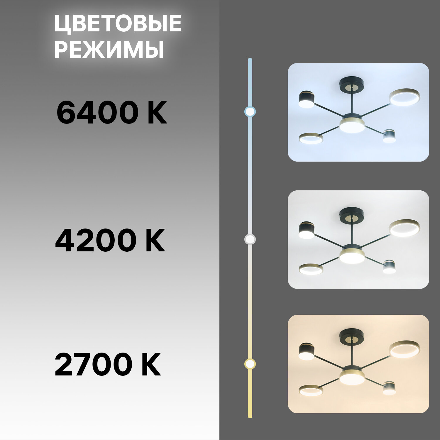 | Цвет освещения | Изменение оттенков белого |