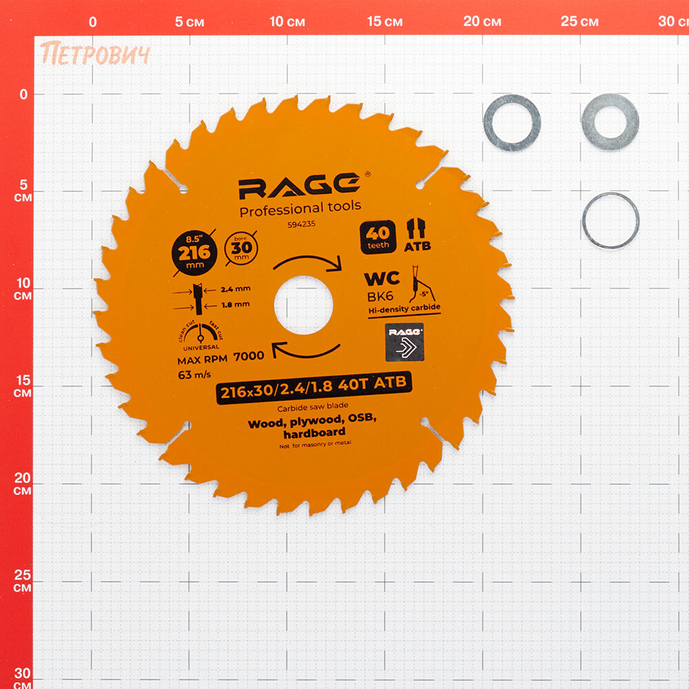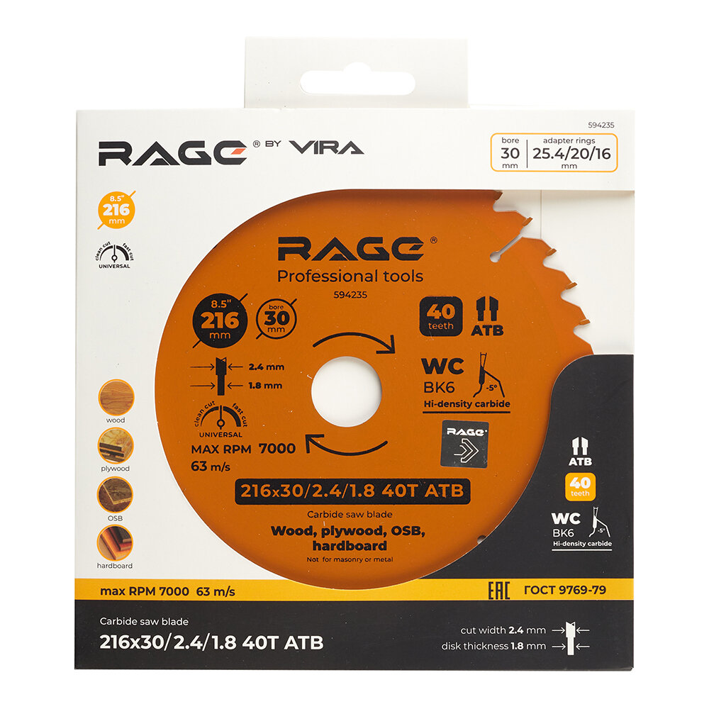 Диск пильный по дереву Rage 40Т 216x30x1.8 мм (216/40)