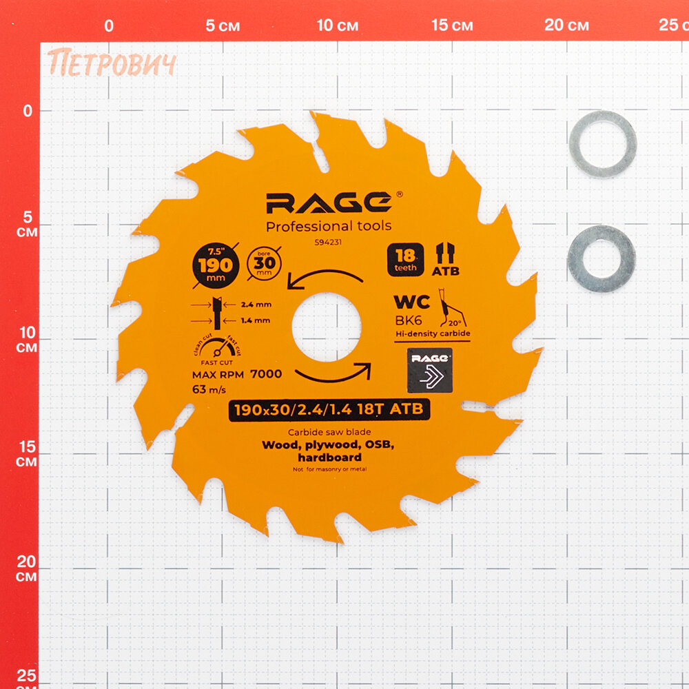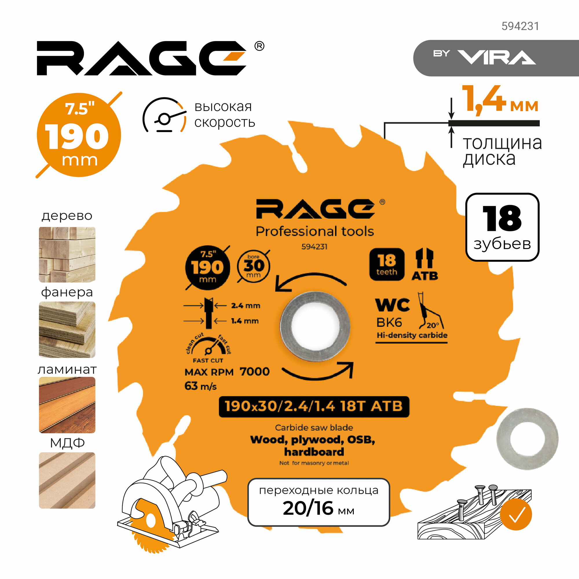 Диск пильный по дереву Rage 18Т 190x30x1.4 мм (190/18)
