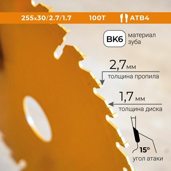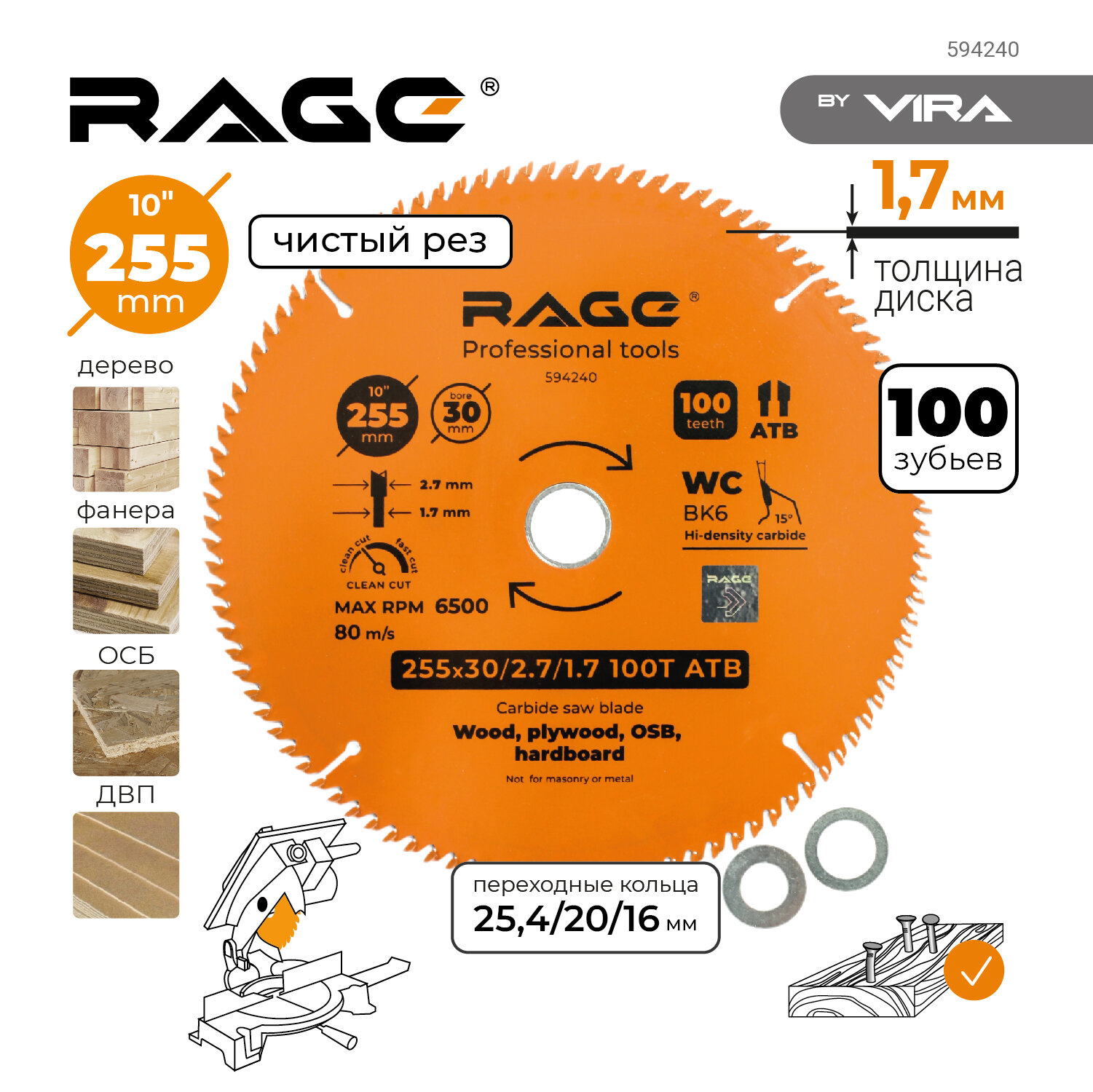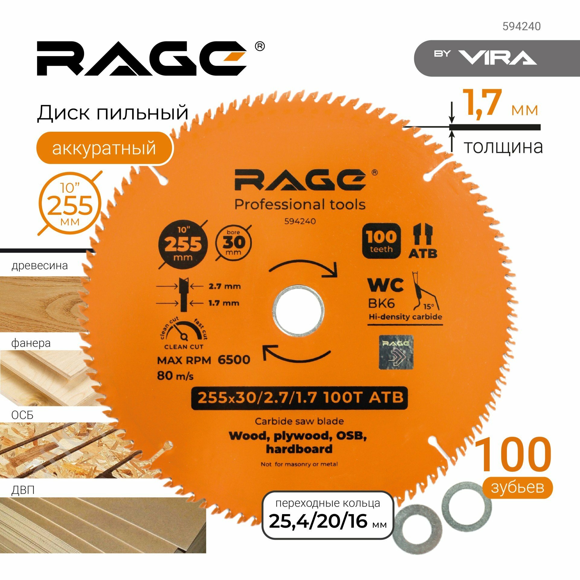 Диск пильный по дереву Rage 100Т 255x30x1.7 мм (255/100)