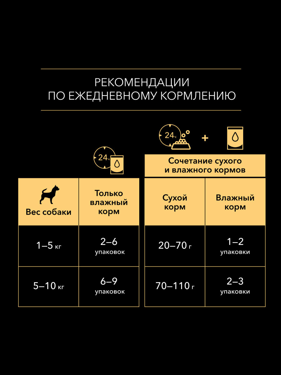 Разработанный нашими ветеринарными врачами и диетологами влажный корм для взрослых собак обеспечивает самое современное питание, которое оказывает долгосрочное влияние на здоровье собаки. Влажные корма Pro Plan учитывают индивидуальные потребности собаки, обеспечивают высокую усвояемость питательных веществ, поддерживают естественную защиту питомца и здоровое пищеварение. Комбинируйте влажные и сухие корма Pro Plan для разнообразия в питании вашего питомца и поддержания здорового водного баланса.