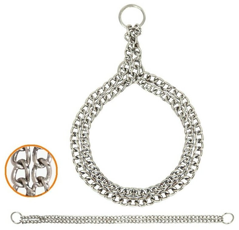 Ошейник- удавка Triol двухрядный для собакФункциональный двухрядный ошейник-удавка из металла - это незаменимый аксессуар для выгула и дрессировки бойцовских собак и питомцев крупных пород. Ошейник моментально затягивается при натяжении поводка, за счет чего эффективен при дрессировке с целью усиления воздействия на рывках.Аксессуар не перетирает шерсть, так как изготовлен из металла высокого качества, защищен от коррозии, не боится влаги и дождя и легко моется от грязи и пыли.Размеры:Диаметр проволоки – 2 мм, длина ошейника – 350 мм. Диаметр проволоки – 2 мм, длина ошейника – 400 мм. Диаметр проволоки – 2 мм, длина ошейника – 450 мм. Диаметр проволоки – 2,5 мм, длина ошейника – 500 мм. Диаметр проволоки – 2,5 мм, длина ошейника – 600 мм. Диаметр проволоки – 2,5 мм, длина ошейника – 650 мм. Диаметр проволоки – 3 мм, длина ошейника – 700 мм.