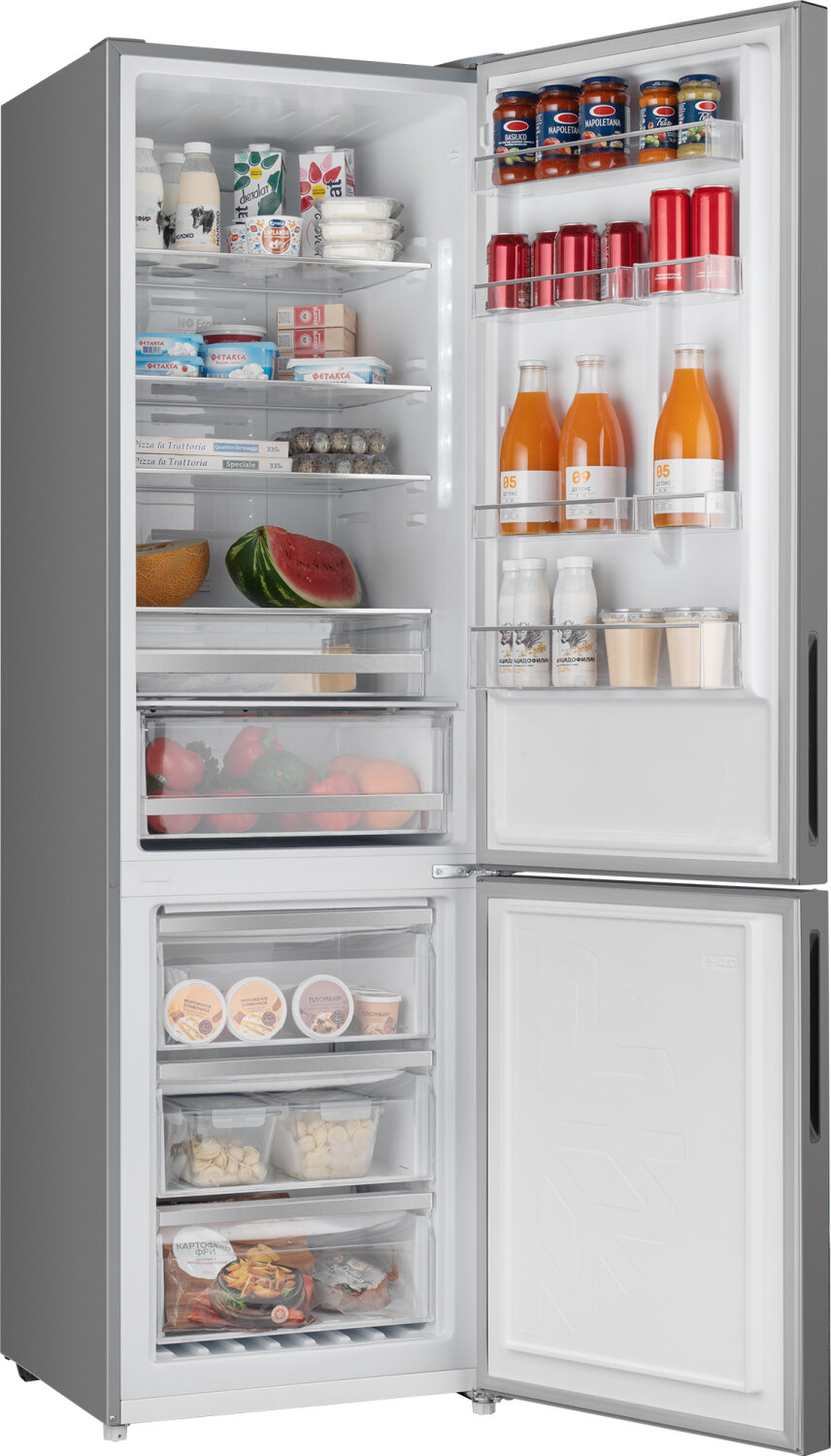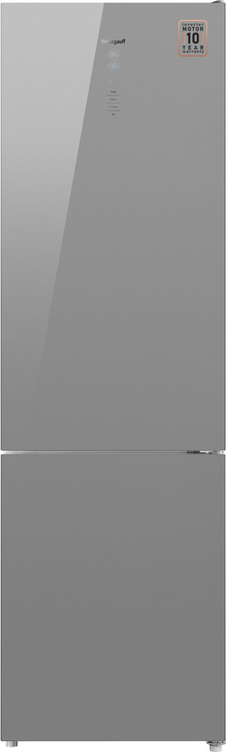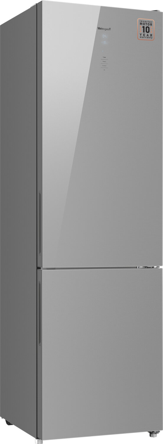 Холодильник Weissgauff WRK 2000 D Full NoFrost Inverter Grey Glass серое стекло, двухкамерный, общий объем 377л, с разморозкой холодильной камеры No Frost, с разморозкой морозильной камеры No Frost, расположение морозильной камеры: снизу (431609)