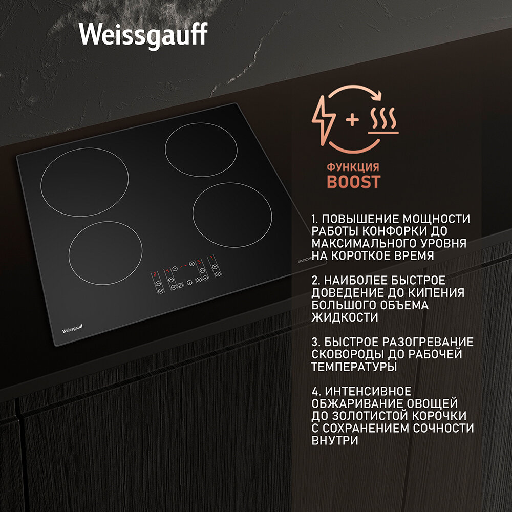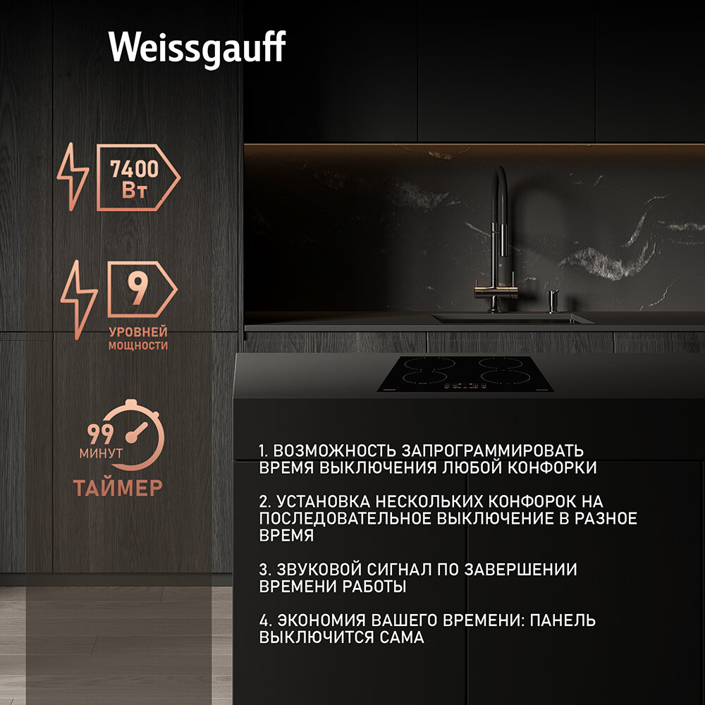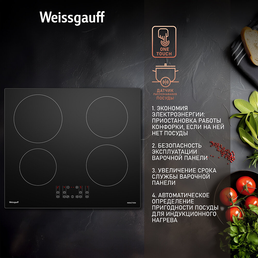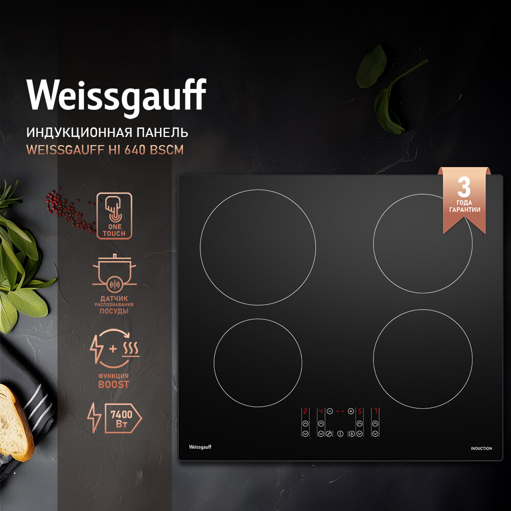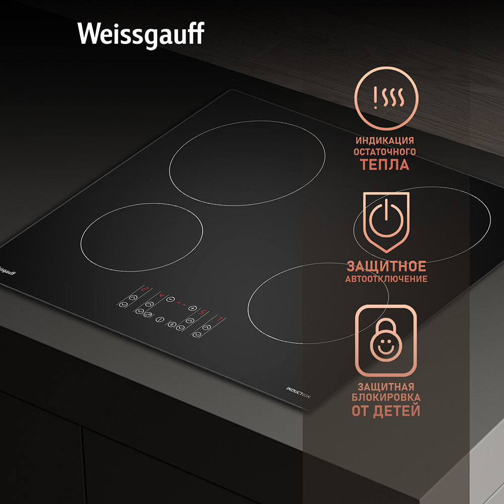 Индукционная варочная поверхность Weissgauff HI 640 BSCM черный, независимая установка, материал поверхности стеклокерамика, индукционных конфорок 4 (431340)