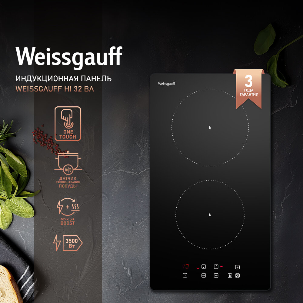 Индукционная варочная поверхность Weissgauff HI 32 BA черный, независимая установка, материал поверхности стеклокерамика, индукционных конфорок 2 (430966)