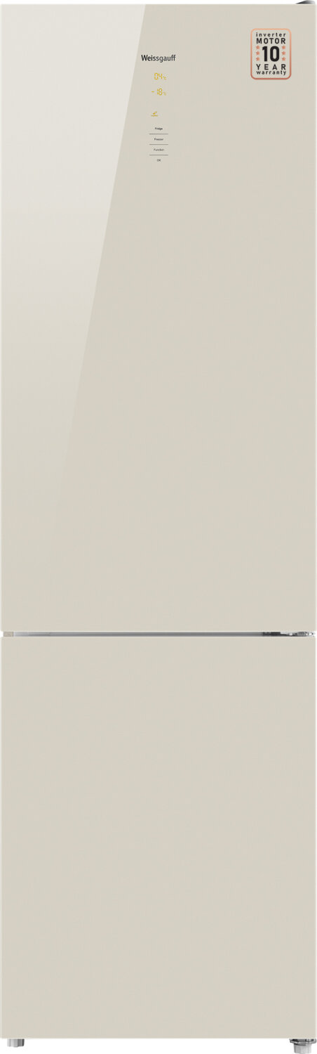 Холодильник Weissgauff WRK 2000 D Full NoFrost Inverter Beige Glass бежевый стекло, двухкамерный, общий объем 377л, с разморозкой холодильной камеры No Frost, с разморозкой морозильной камеры No Frost, расположение морозильной камеры: снизу (431608)