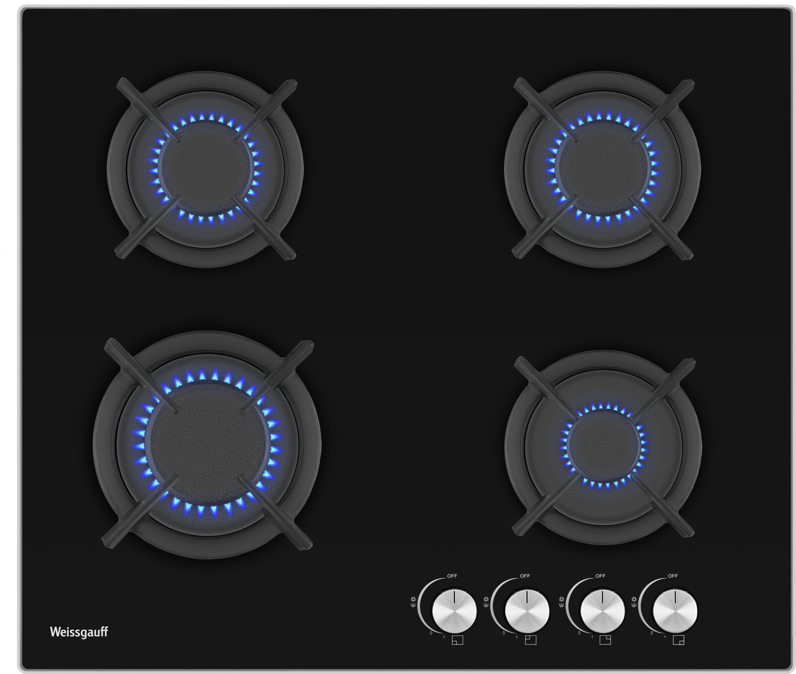 Газовая варочная поверхность Weissgauff HG 640 WG белый, независимая установка, материал поверхности закаленное стекло, количество конфорок: 4шт. (430951)