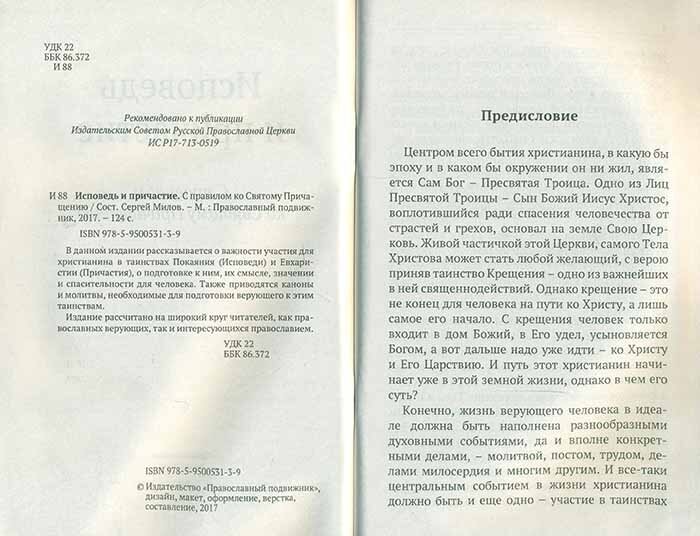 В данном издании рассказывается о важности участия для христианина в таинствах Покаяния (Исповеди) и Евхаристии (Причастия), о подготовке к ним, их смысле, значении и спасительности для человека. Также приводятся каноны и молитвы, необходимые для подготовки верующего к этим таинствам.