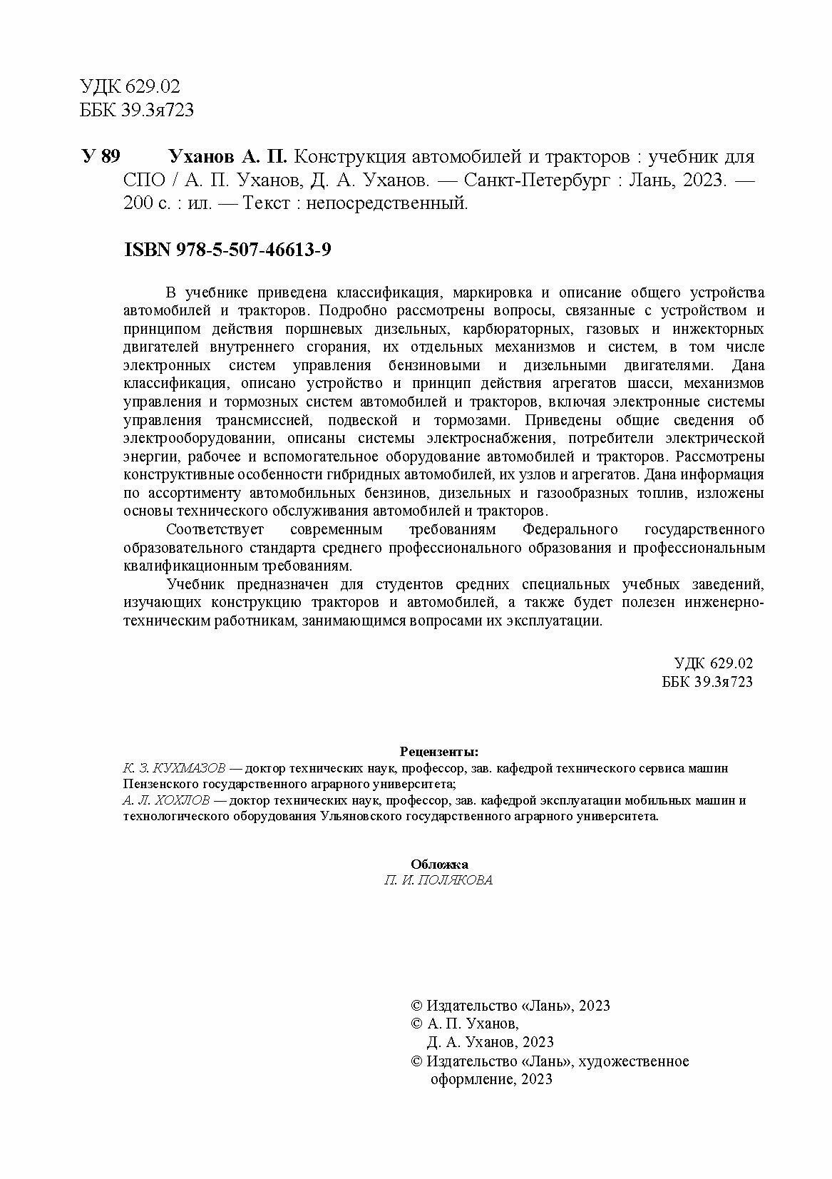 Конструкция автомобилей и тракторов. Учебник для СПО (А. П. Уханов); Издательство ЛАНЬ, 2023