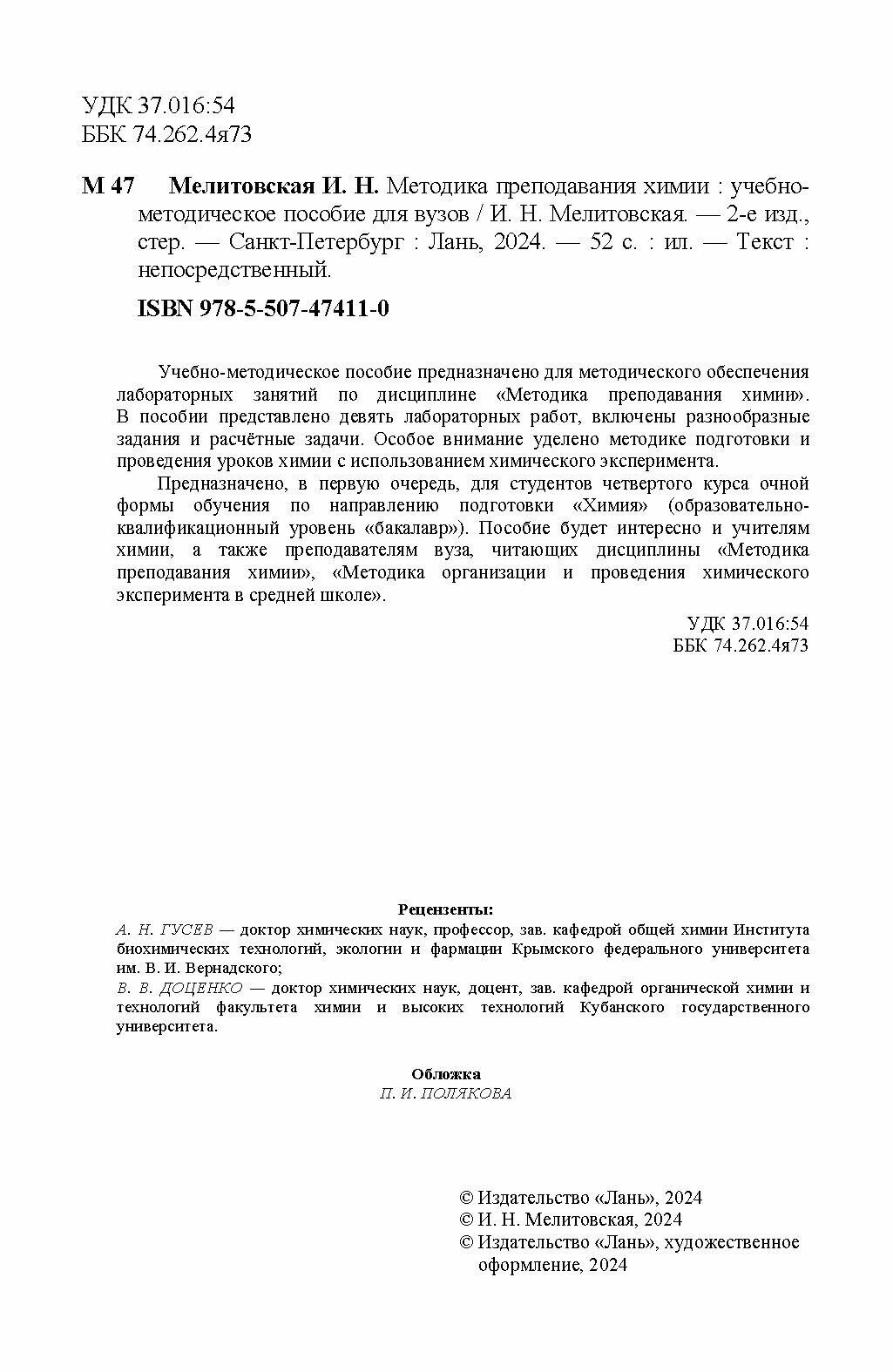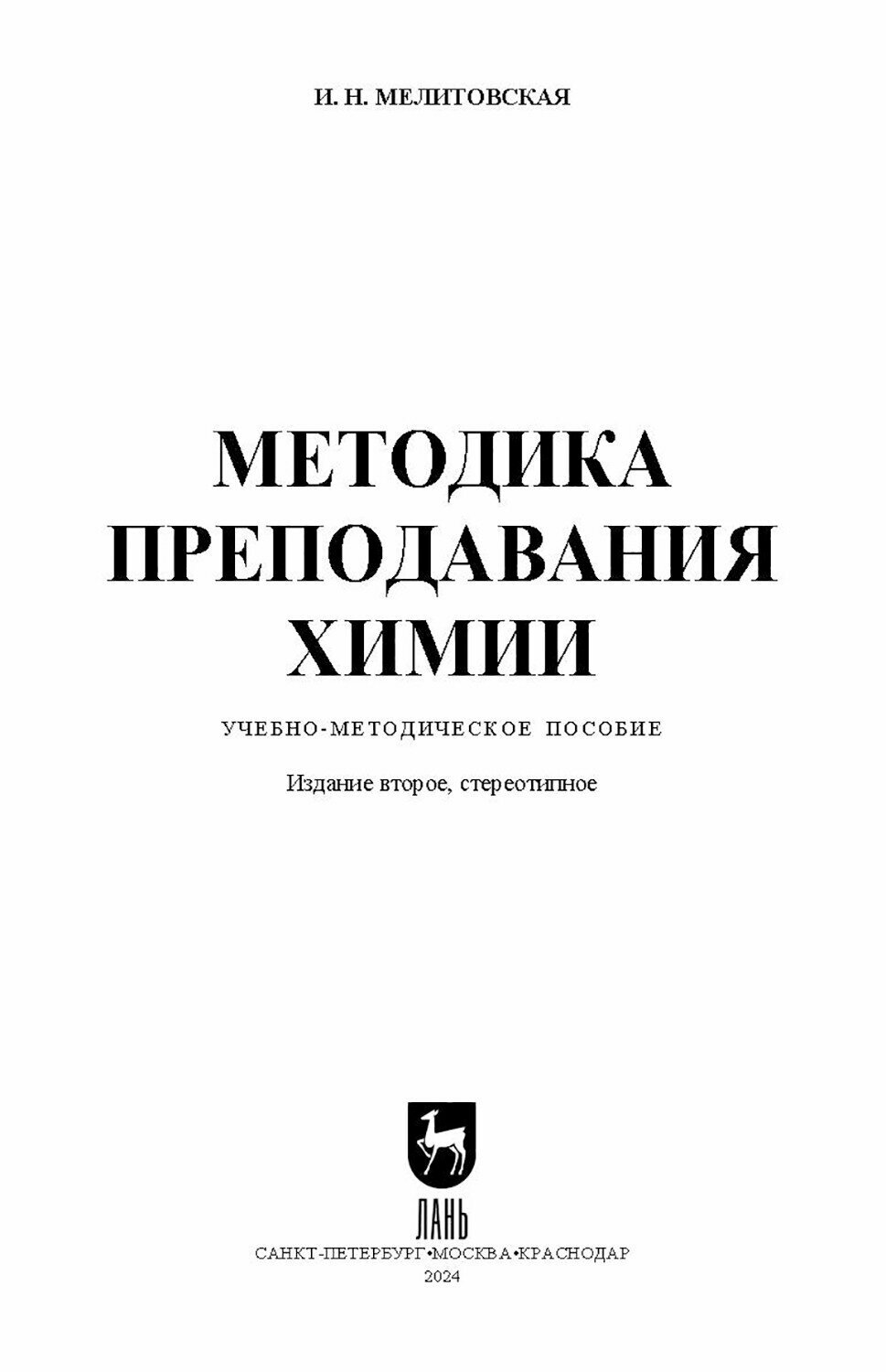 Методика преподавания химии. Учебно-методическое пособие для вузов (И. Н. Мелитовская); Издательство ЛАНЬ, 2023
