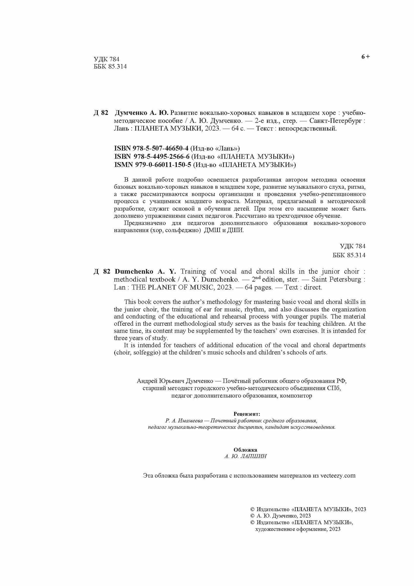 Развитие вокально-хоровых навыков в младшем хоре. Учебно-методическое пособие (А. Ю. Думченко); Издательство «Планета музыки», 2024