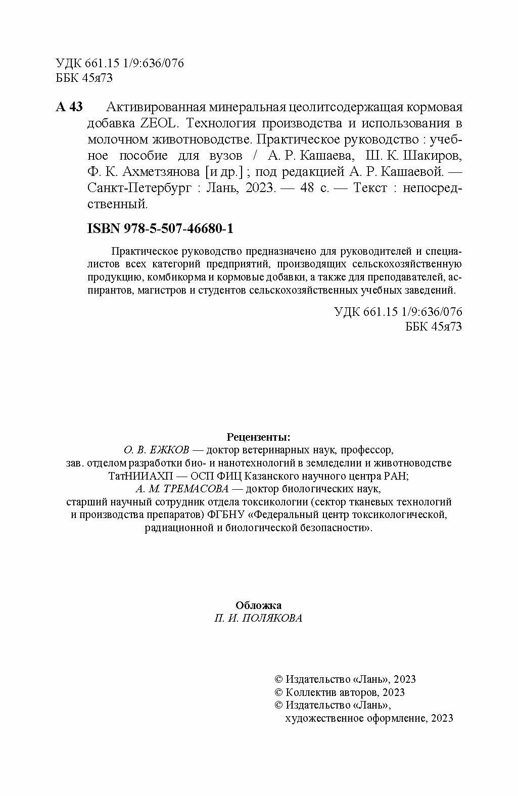 Активированная минеральная цеолитсодержащая кормовая добавка ZEOL. Технология производства (Шакиров Шамиль Касымович, Кашаева Алия Ринатовна, Гарипов Ленар Наилевич); Лань, 2023