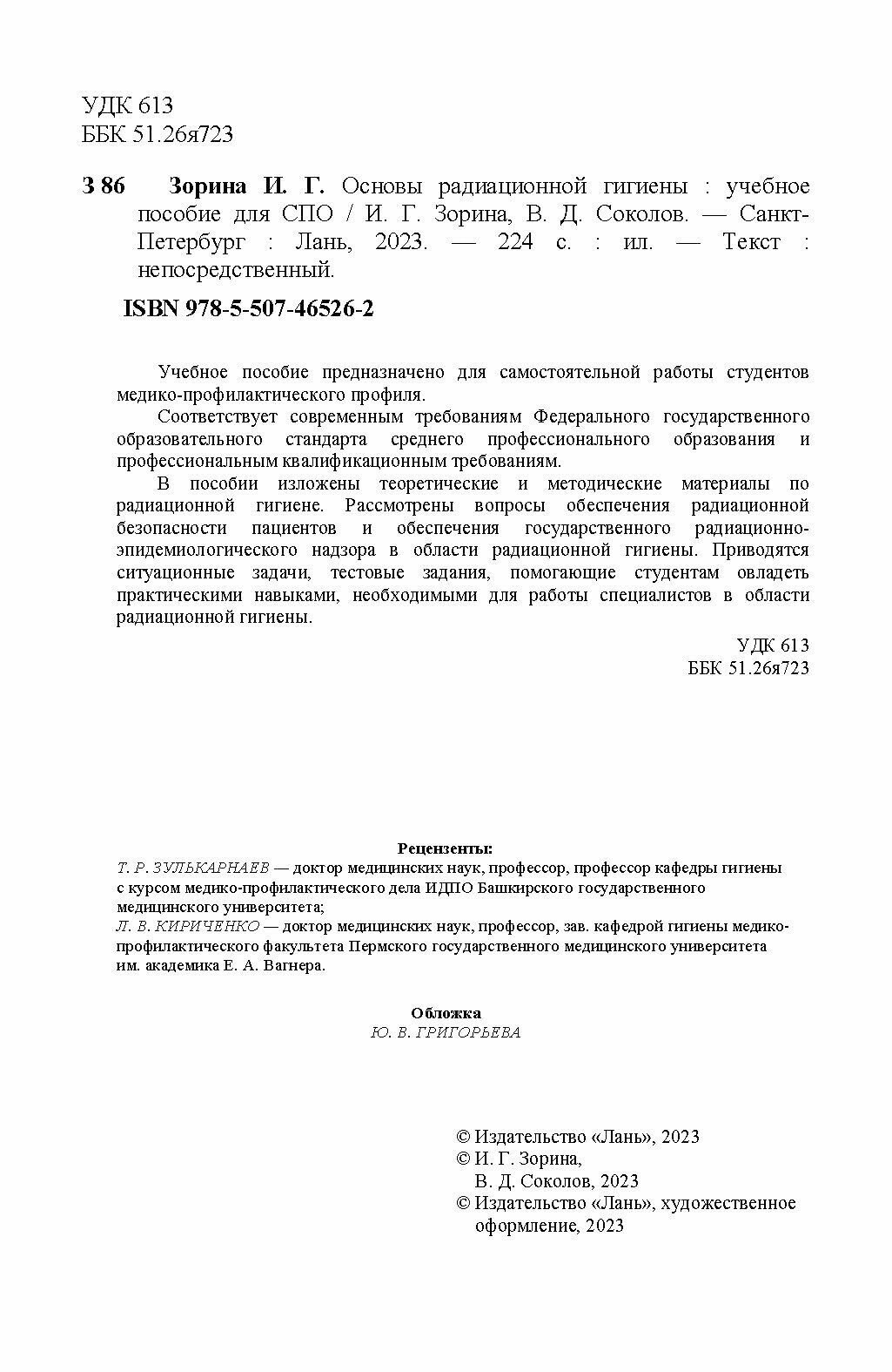 Основы радиационной гигиены. Учебное пособие для СПО (И. Г. Зорина); Издательство ЛАНЬ, 2023