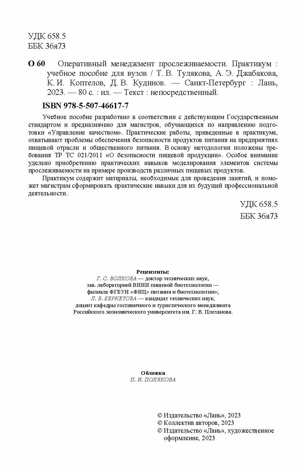 Оперативный менеджмент прослеживаемости. Практикум. Учебное пособие для вузов (Тулякова Татьяна Владимировна, Джабакова Анна Эдуардовна, Коптелов Кирилл Игоревич); Лань, 2023