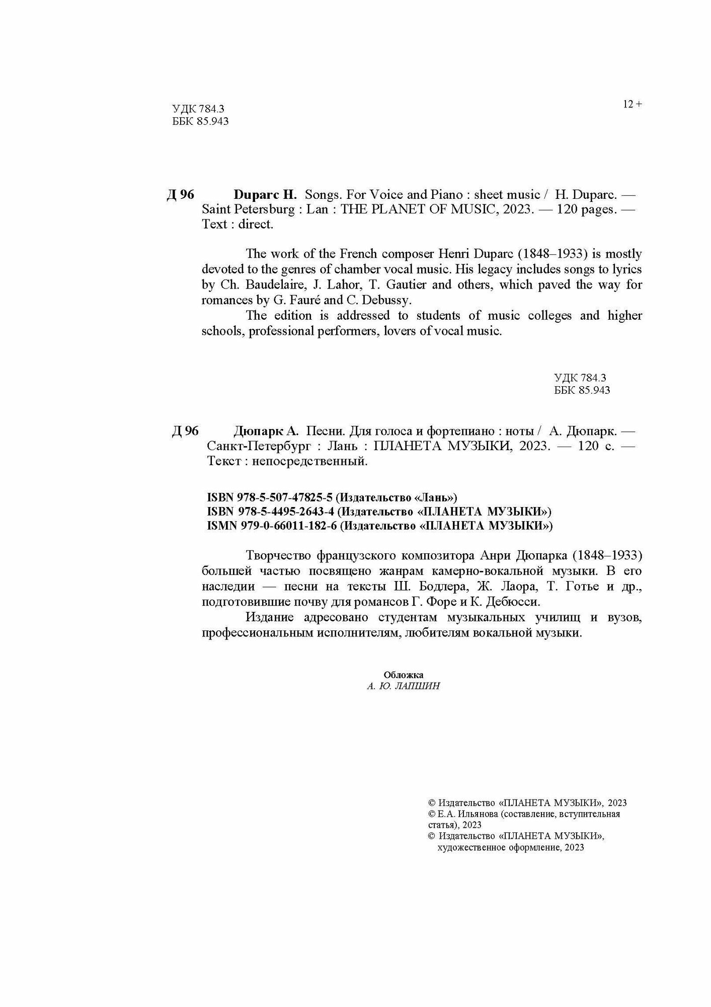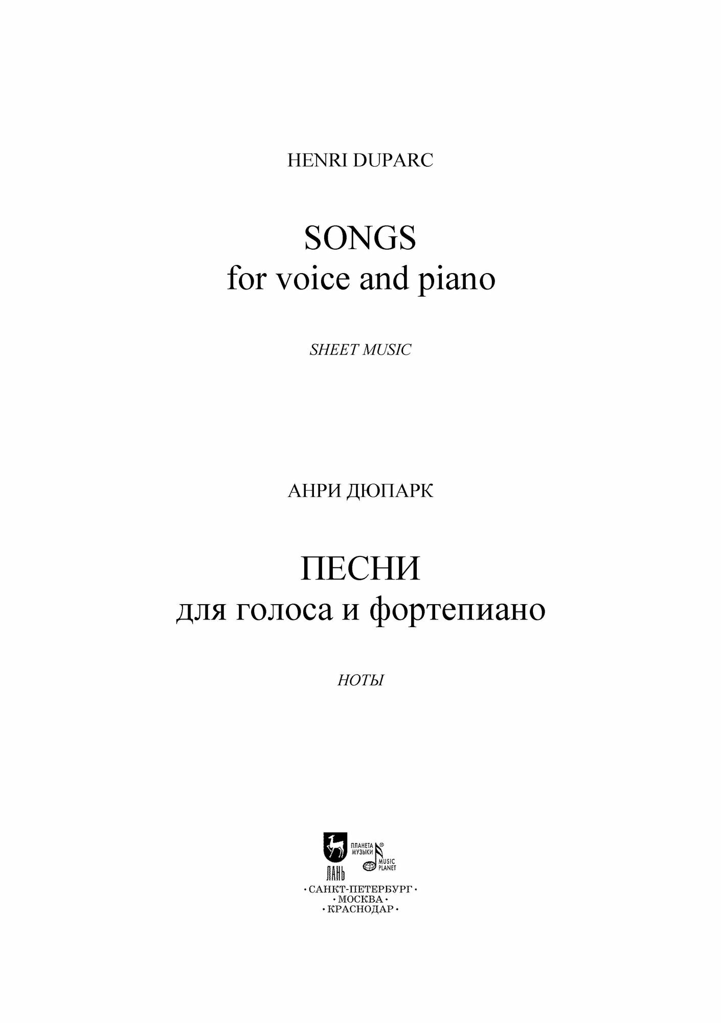 Песни. Для голоса и фортепиано. Ноты (Анри Дюпарк); Издательство «Планета музыки», 2023