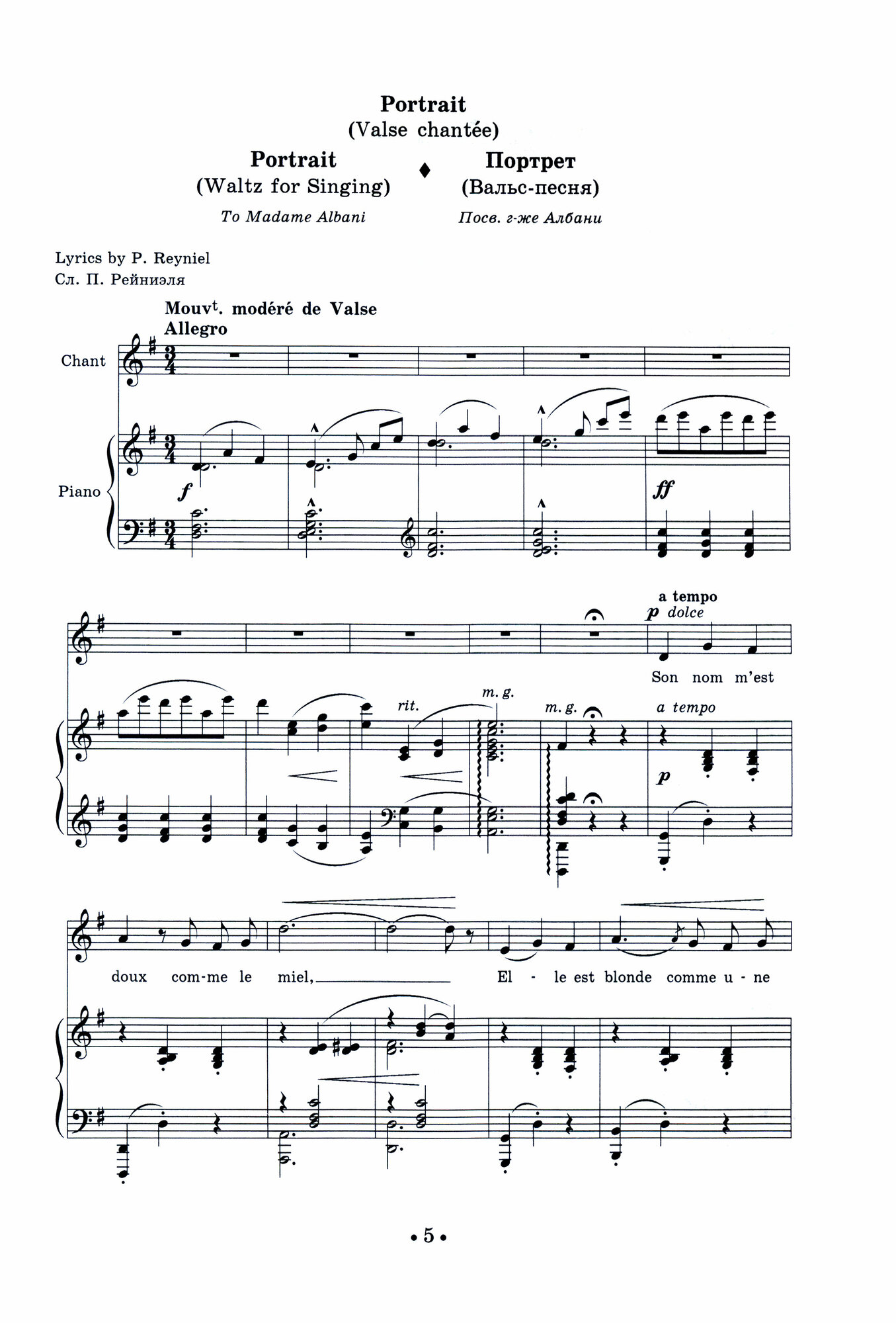 При жизни Сесиль Шаминад (1857-1944) была известна как одна из самых талантливых пианисток и композиторов Европы. Ее музыкальный стиль развивался в рамках французского позднего романтизма. В наследии Шаминад — около 400 произведений, значительную часть которых составляет камерно-вокальная лирика. В сборник вошли избранные песни на стихи французских поэтов.