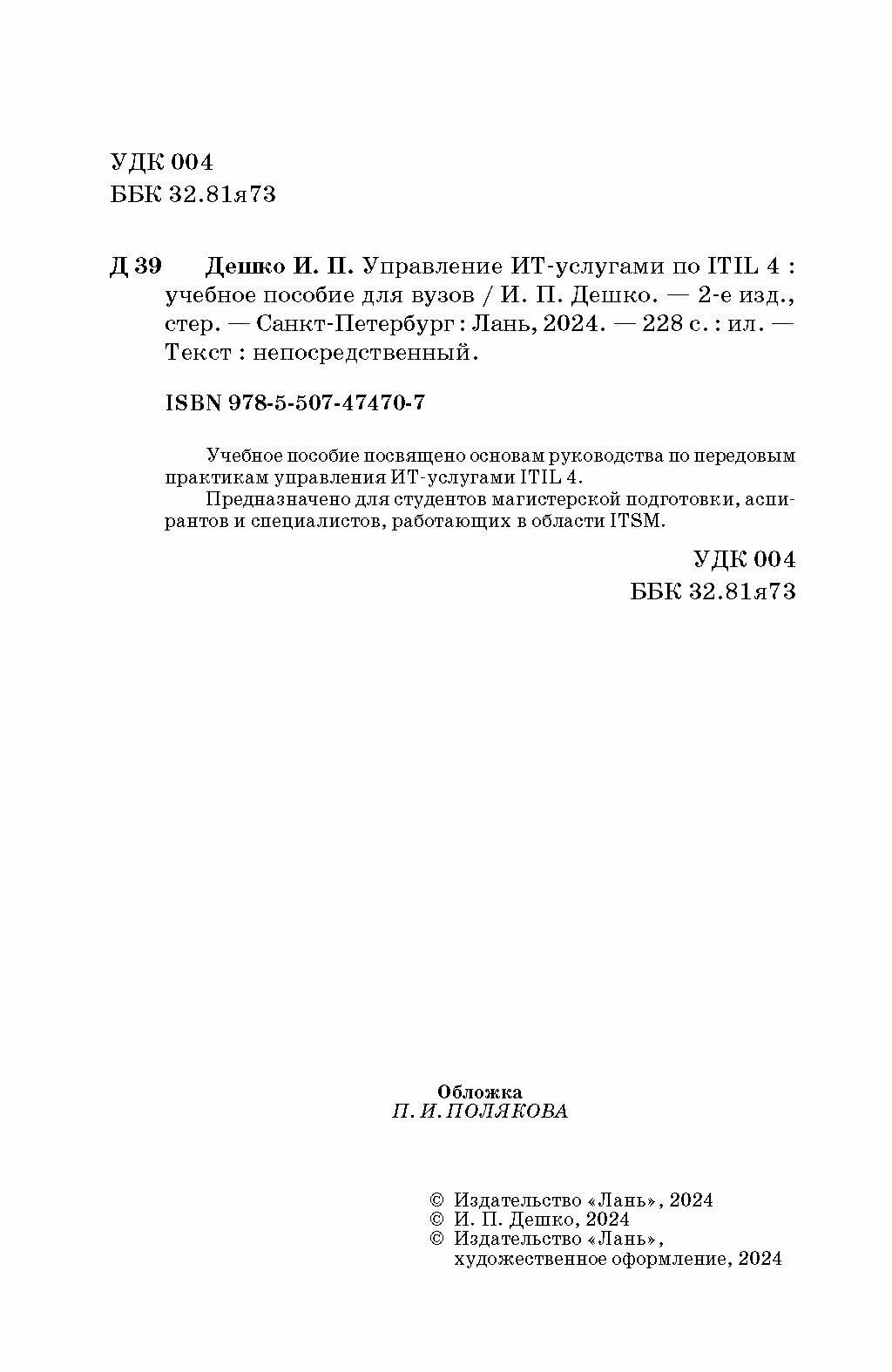 Управление ИТ-услугами по ITIL 4. Учебное пособие для вузов (Дешко Игорь Петрович); Лань, 2024